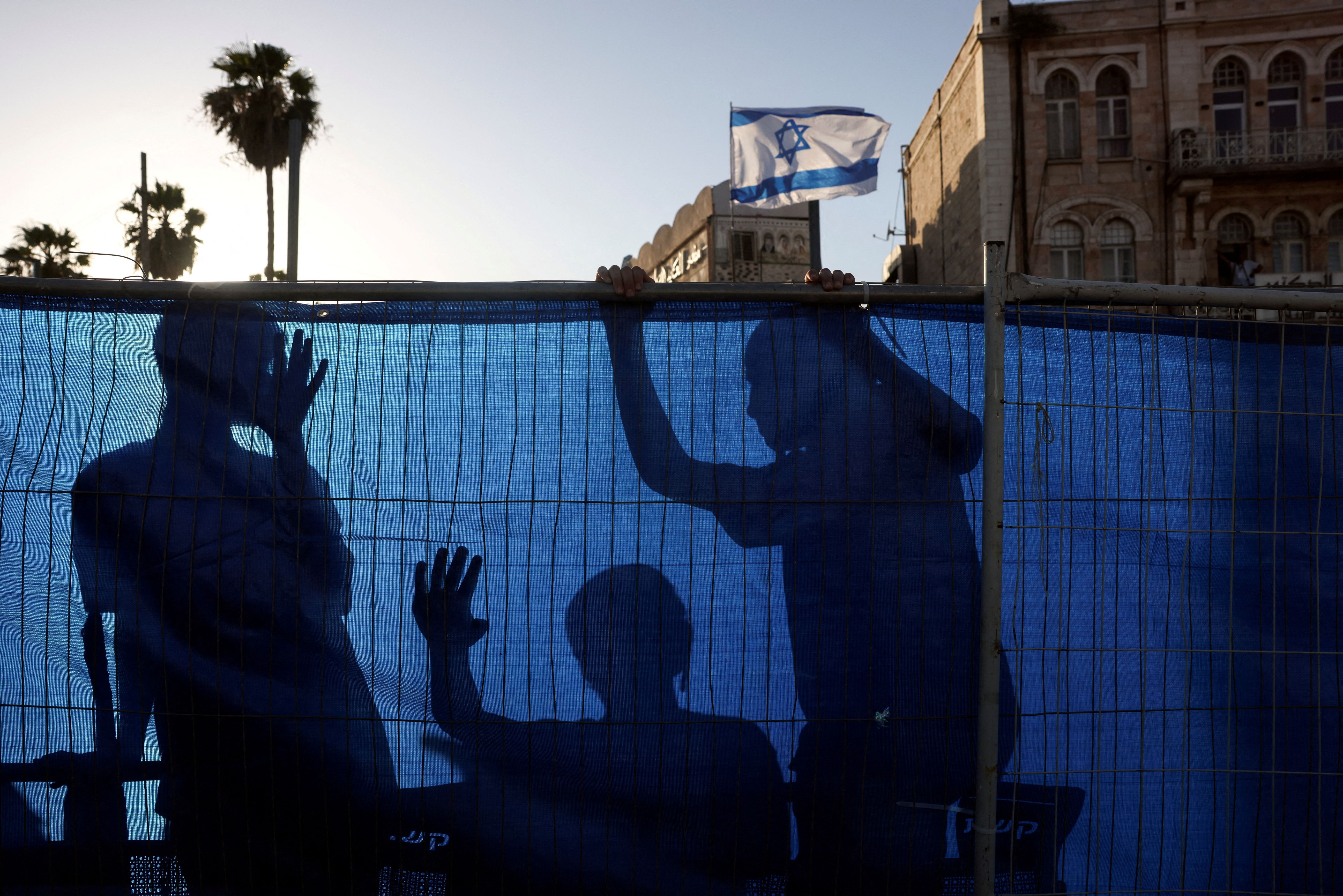 Young Israelis are silhouetted as people participate in the annual Jerusalem Day march, near Damascus Gate in Jerusalem, on June 5, 2024. As in years past, some marchers scuffled with Palestinians in Jerusalem's walled Old City, flashpoint site of shrines to the three major faiths. Police said 18 people, among them teenagers, were arrested, including for assaulting a journalist. (Photo by Ronen Zvulun/Reuters)