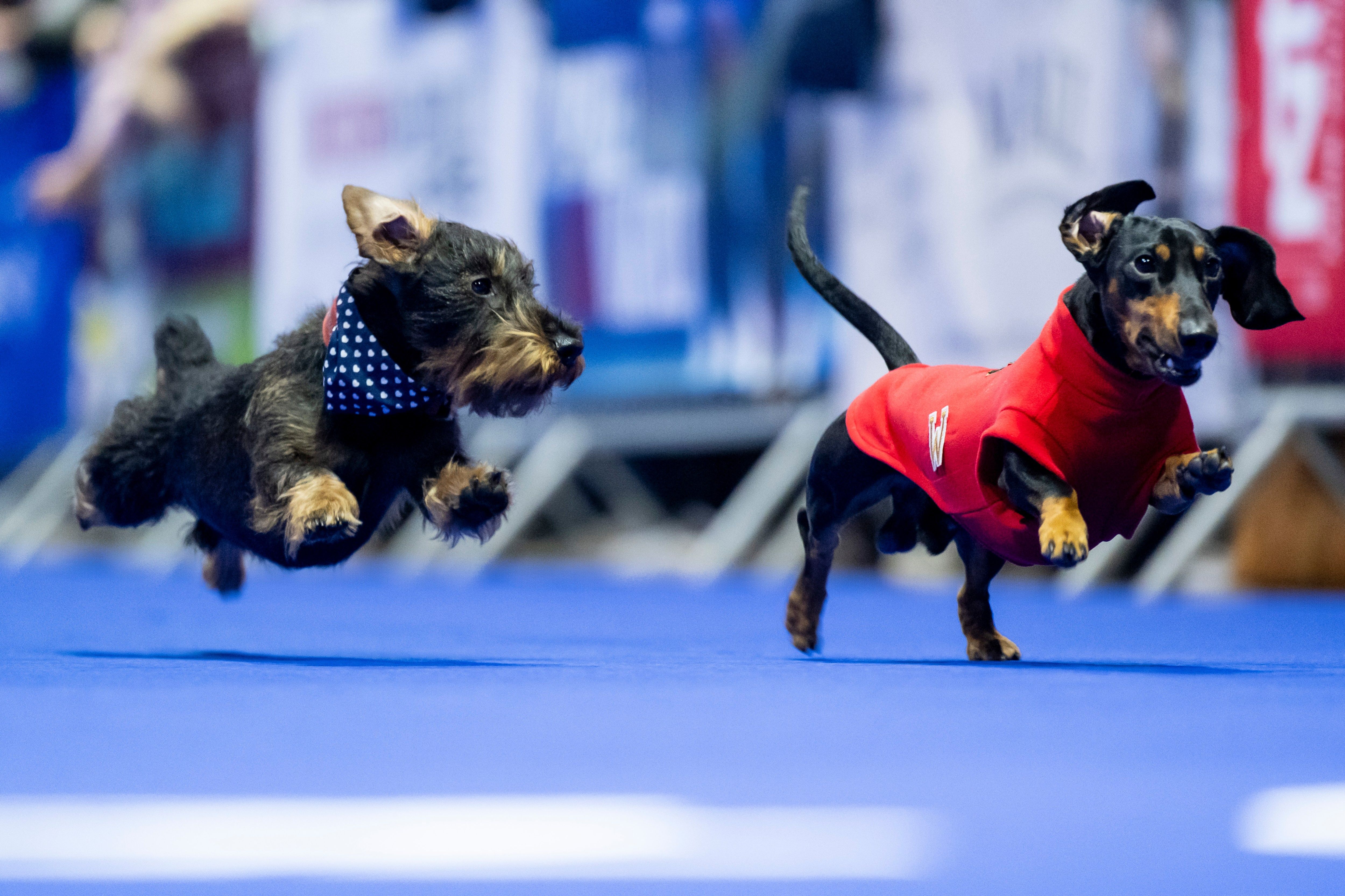 Dachshunds compete in the 2nd Munich Dachshund Race at the DogWorld Lifestyle Festival on November 3, 2024 in Munich, Germany. Dachshund owners across Germany are concerned over possible new legislation that could lead to the end of breeding and exhibiting of dachshunds. The legislation is aimed at ending the physical suffering of dogs originating from the gene combinations in their breeding. According to the VDH, Germany's biggest association of dog owners, the description of problematic physical attributes in the legislation, including a long body and short legs, would threaten the breeding of dachshunds, as well as other dog races including beagles, Cocker Spaniels and Welsh Pembroke Corgis. (Photo by Lennart Preiss/Getty Images)
