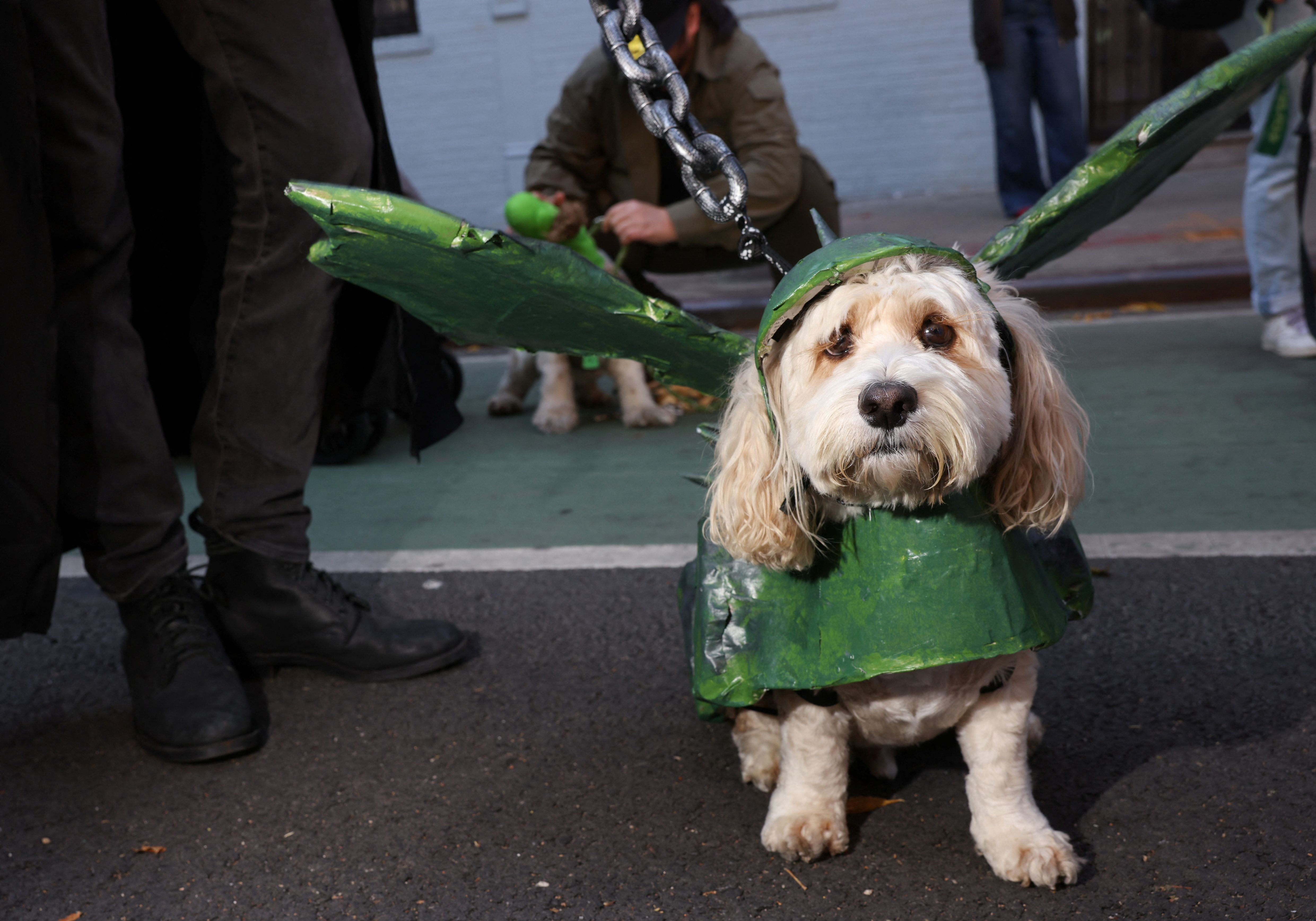 Theo, dressed as a dragon from Game of Thrones waits before walking in the Halloween Dog Parade in New York City, U.S., October 19, 2024. (Photo by Caitlin Ochs/Reuters)