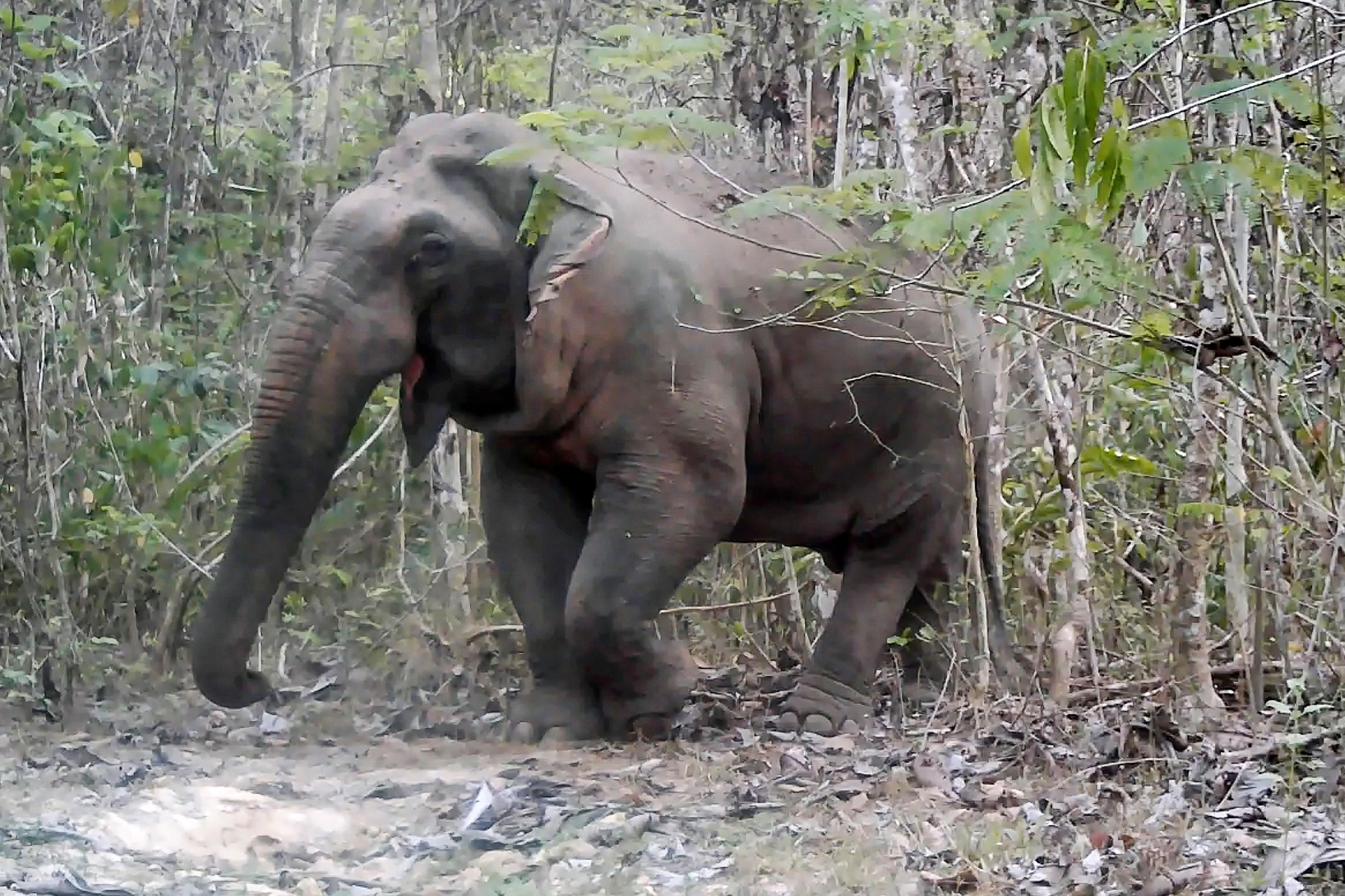 This handout camera trap photo released by Conservation International on October 30, 2024 shows an Asian elephant walking in the Central Cardamom Mountains in southwestern Cambodia in 2024. (Photo by Conservation International/Handout via AFP Photo)