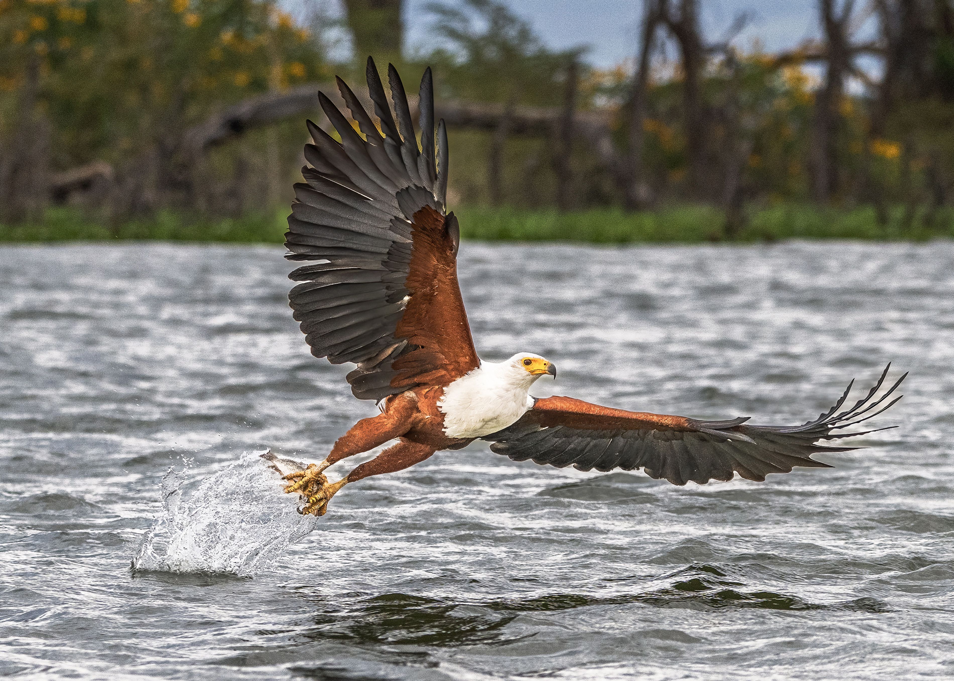 An eagle swoops to snatch a fish from Lake Naivasha in Kenya in the last decade of October 2024. (Photo by Allen He/Solent News)