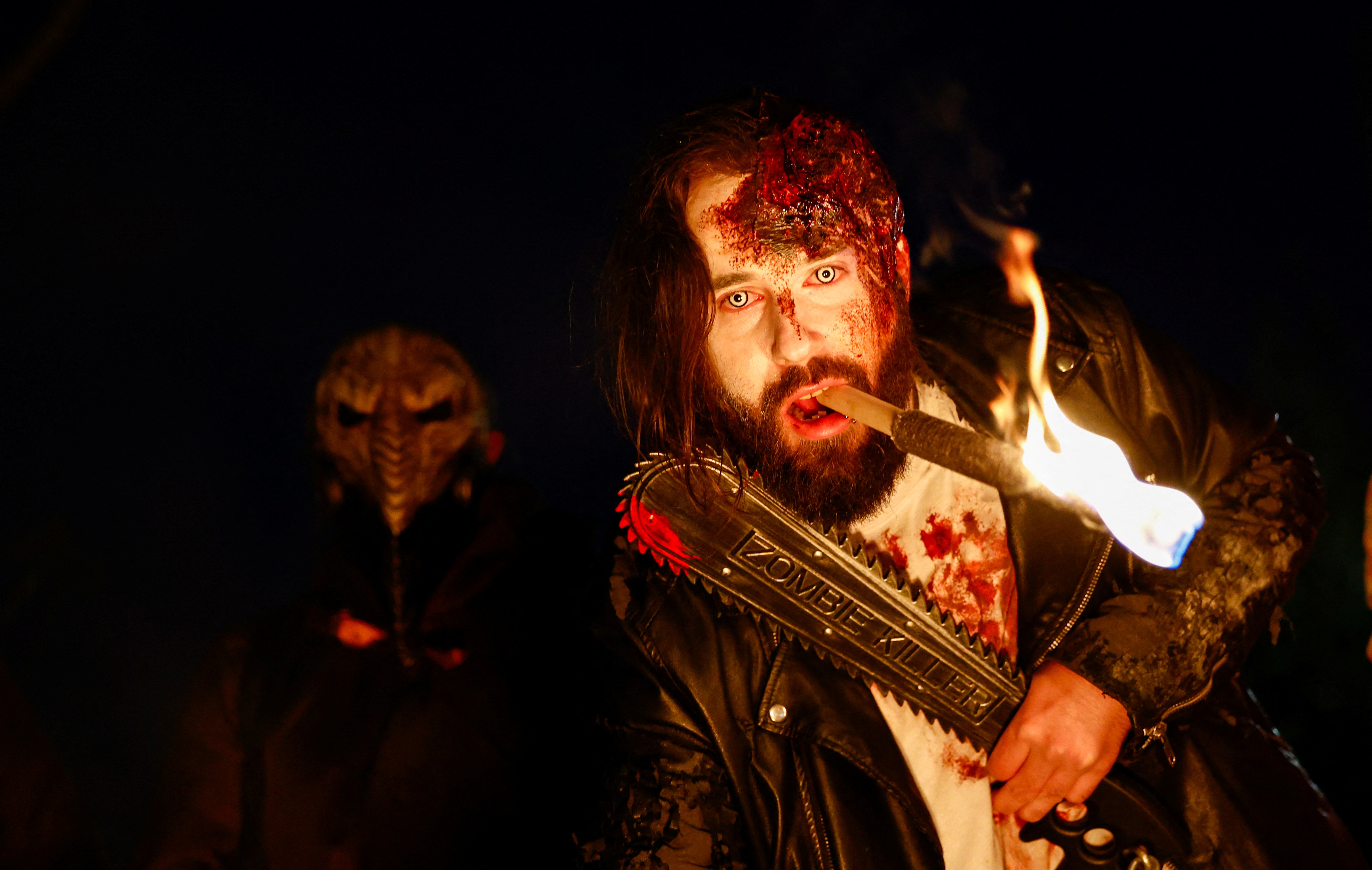 A person in a Halloween-themed costume attends the Zombie Walk Event in Essen, Germany on October 31, 2024. (Photo by Leon Kuegeler/Reuters)