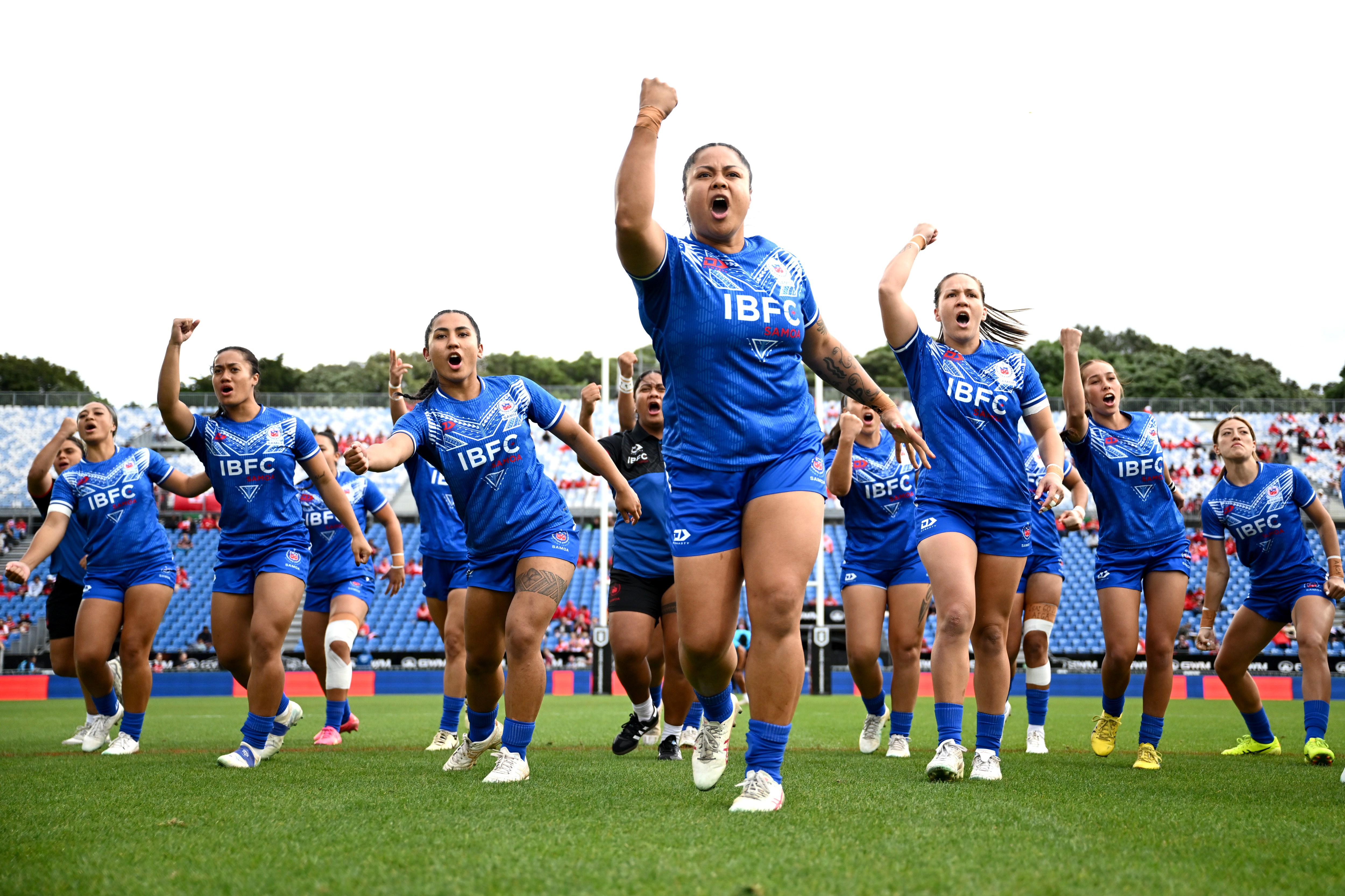 Annetta-Claudia Nu'uausala of Fetu Samoa leads the Siva Tau ahead of the 2024 Pacific Championships Pacific Bowl Women's match between Fetu Samoa and Fiji Bulikula at Go Media Stadium on November 02, 2024 in Auckland, New Zealand. (Photo by Hannah Peters/Getty Images)