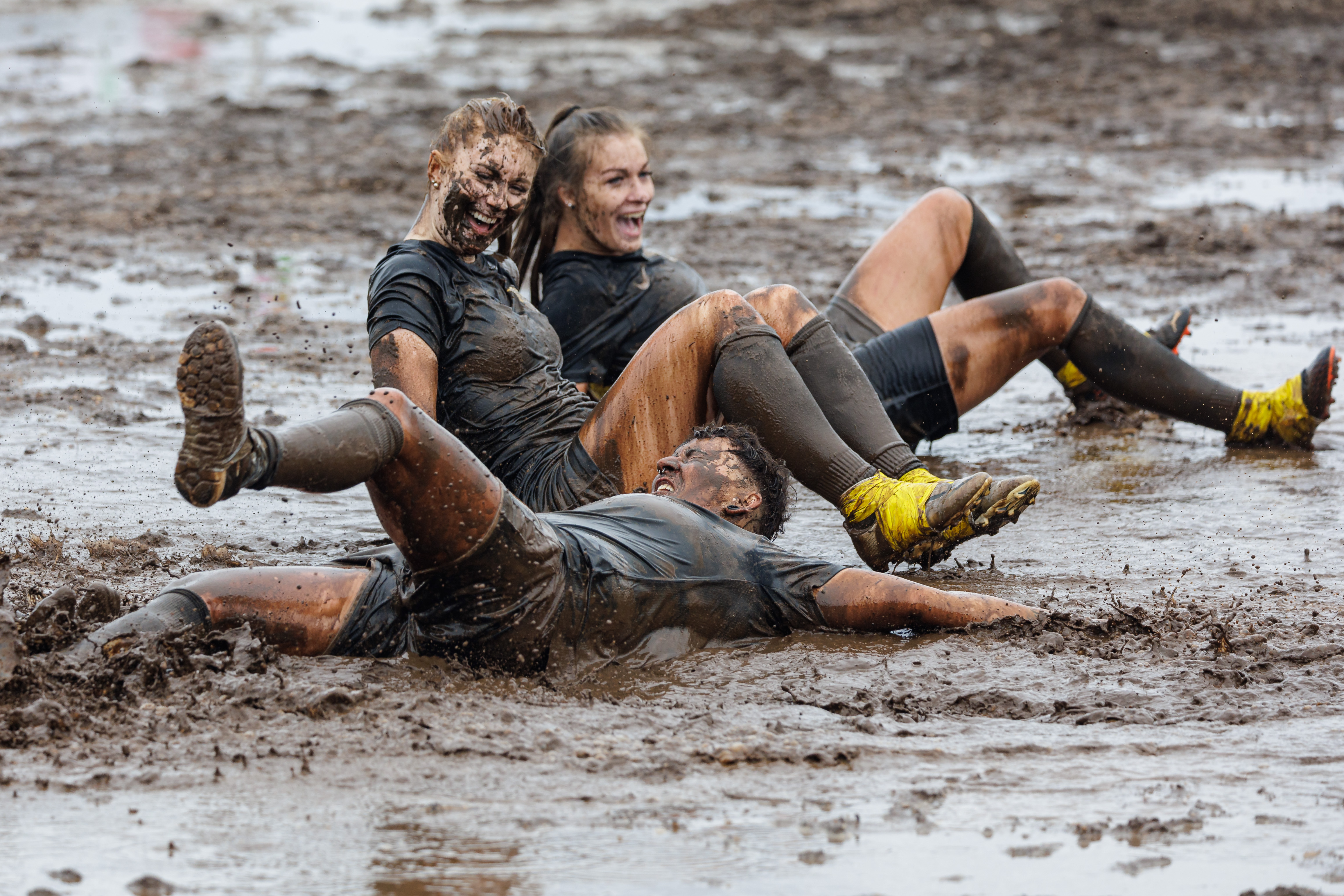 Competitors react during the 2023 German Mud Football Championships on August 5, 20234 in Woellnau, Germany. Twelve men's and two women's teams are competing this year for the championship titles. (Photo by Jens Schlueter/Getty Images)
