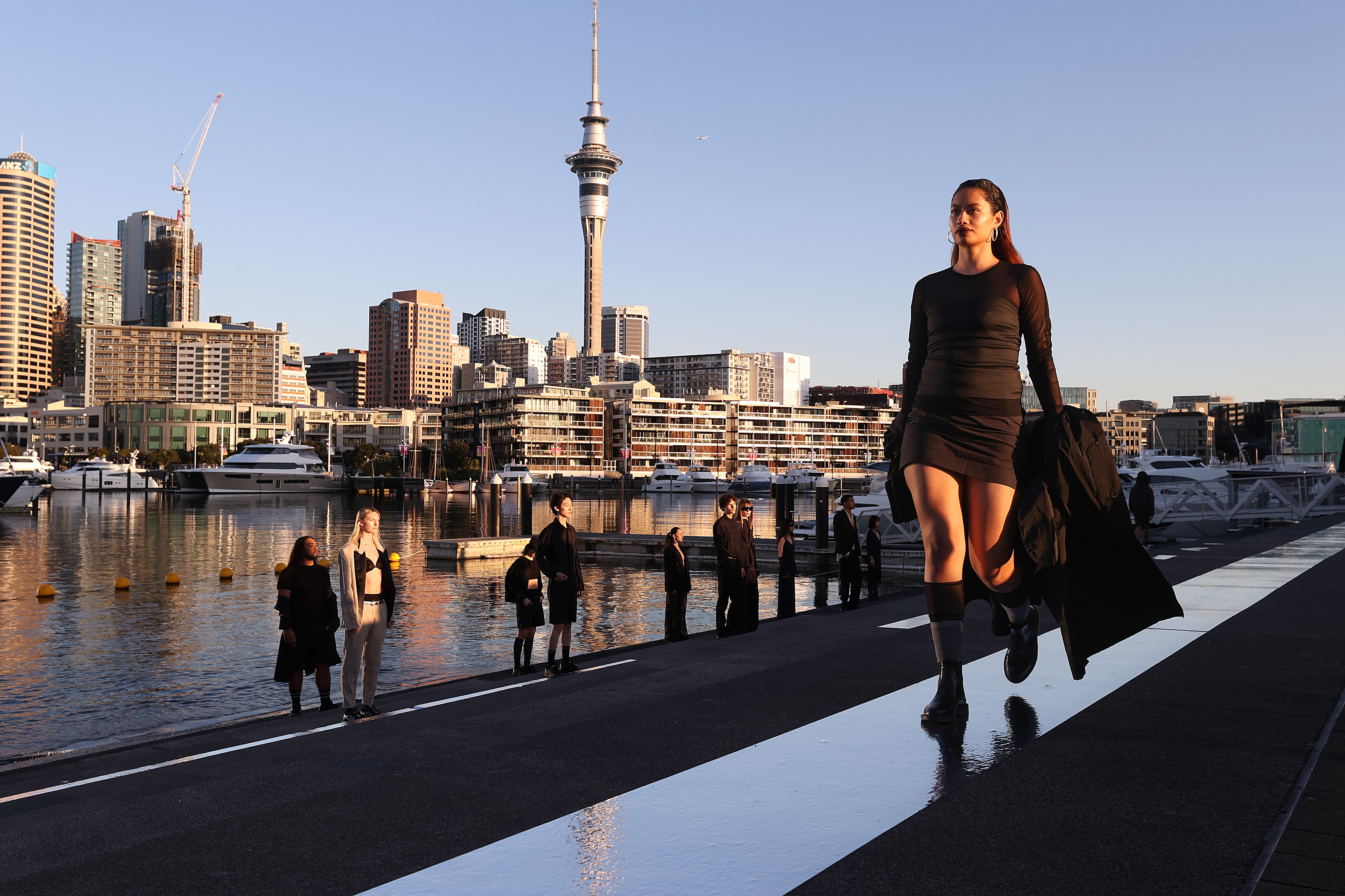 A model walks the runway during the Zambesi show during New Zealand Fashion Week 23: Kahuria at Wynyard Quarter on August 31, 2023 in Auckland, New Zealand. (Photo by Fiona Goodall/Getty Images for NZFW)