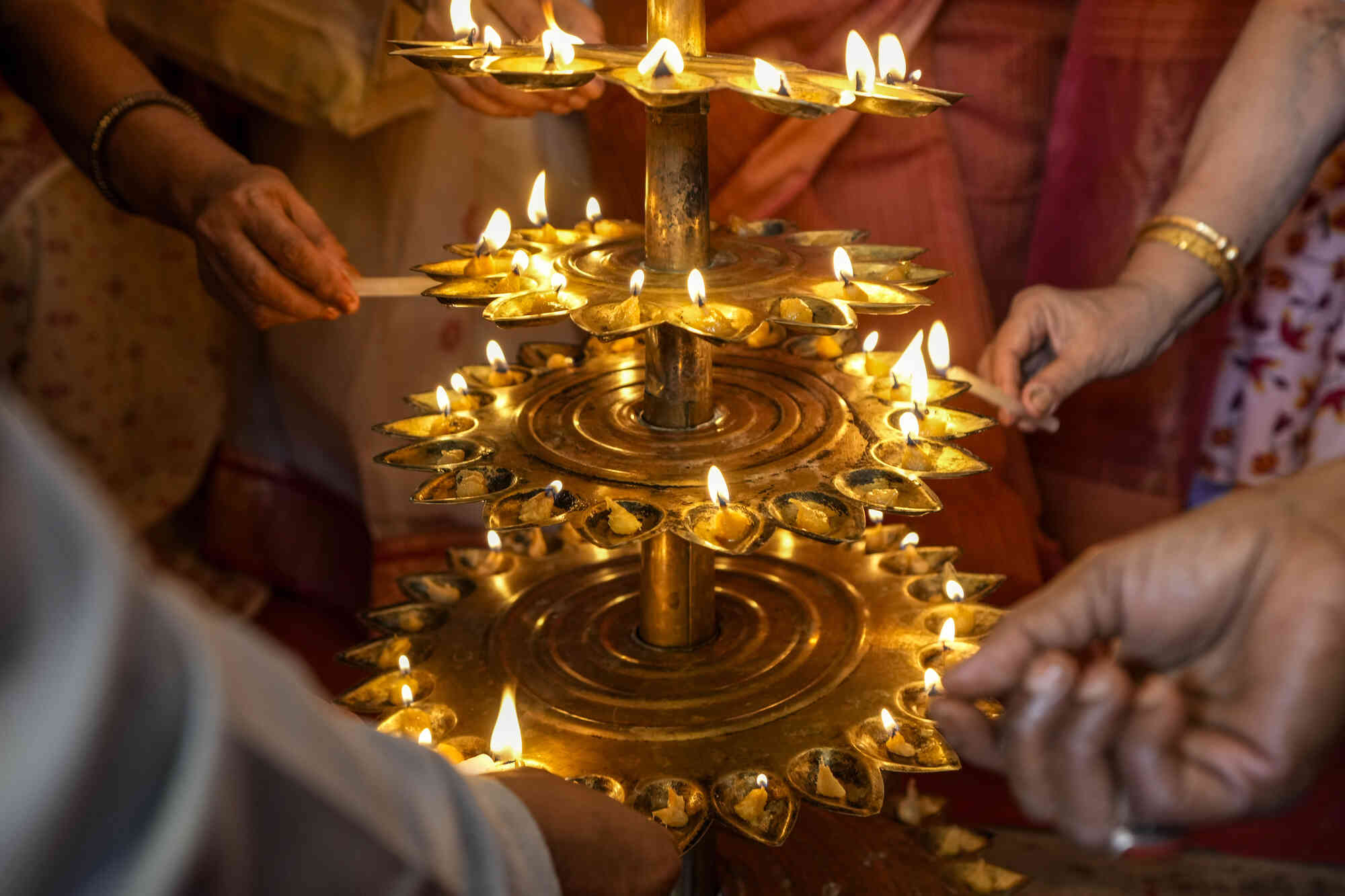 Devotees light oil lamps on the auspicious juncture of the day during the worship of Hindu goddess Durga on third day, in Kolkata, India, Friday, October 11, 2024. (Photo by Bikas Das/AP Photo)