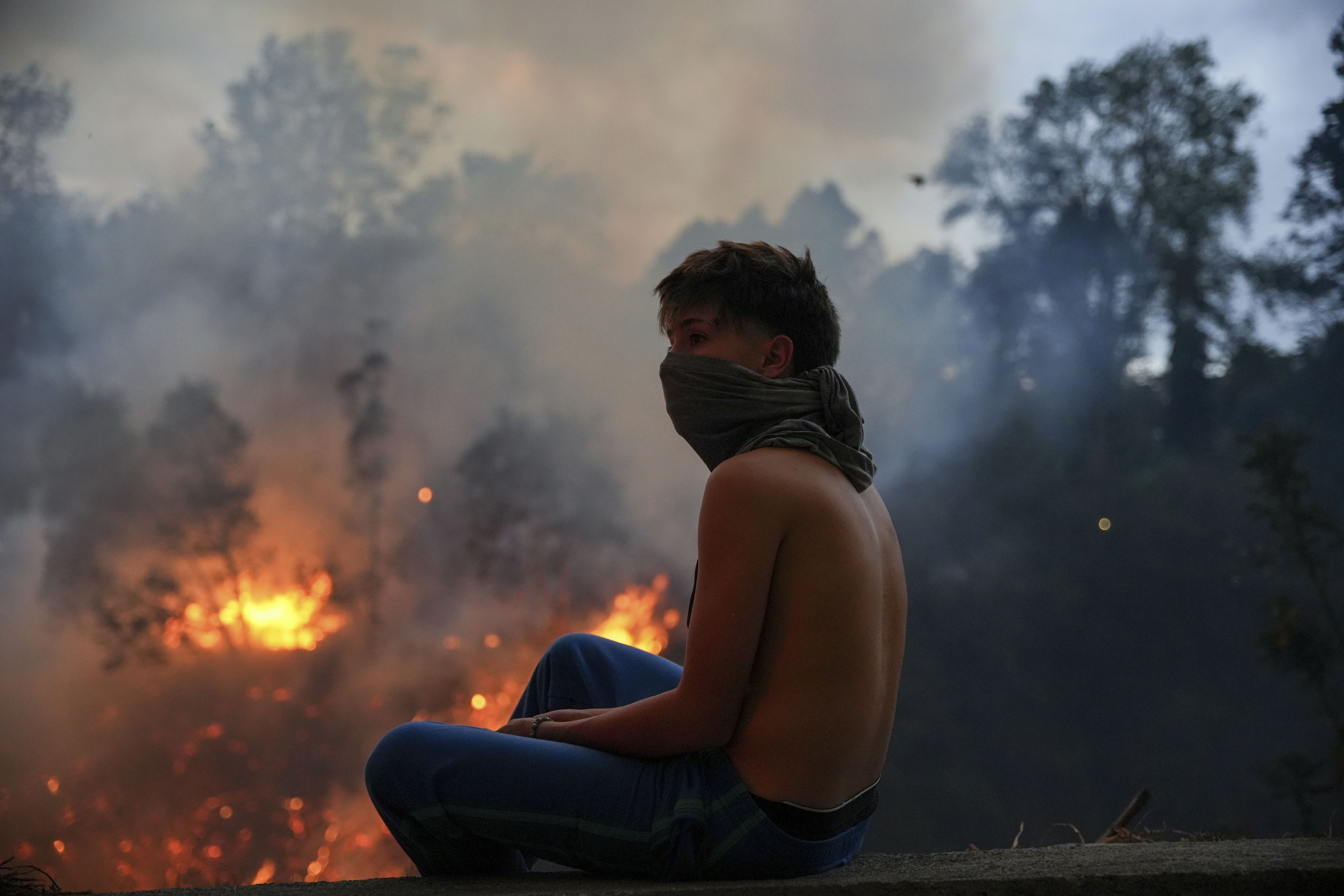 A resident watches fires burning in a forested area in the Guapulo neighborhood of Quito, Ecuador, Tuesday, September 24, 2024. (Photo by Carlos Noriega/AP Photo)