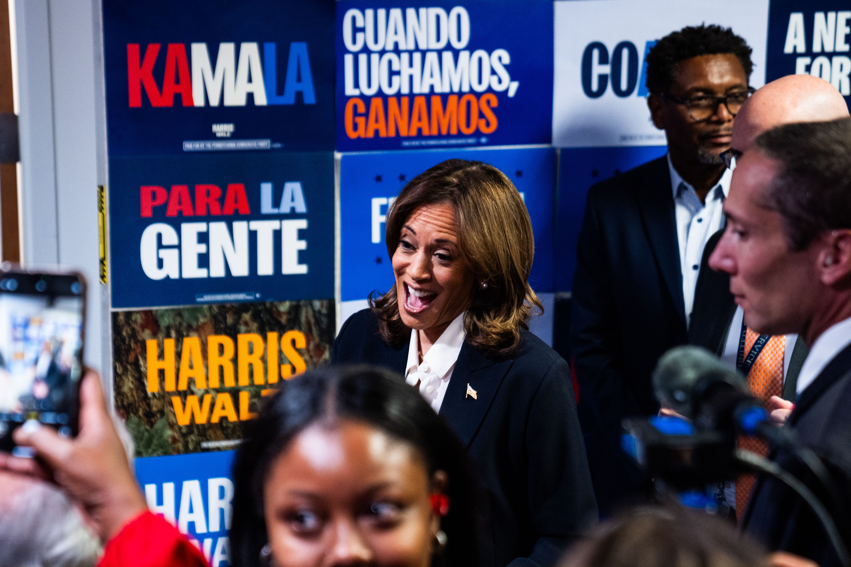 Democratic presidential candidate Vice President Kamala Harris during a phone banking at the DNC Headquarters in Washington, DC on Tuesday, November 5, 2024. (Photo by Demetrius Freeman/The Washington Post)