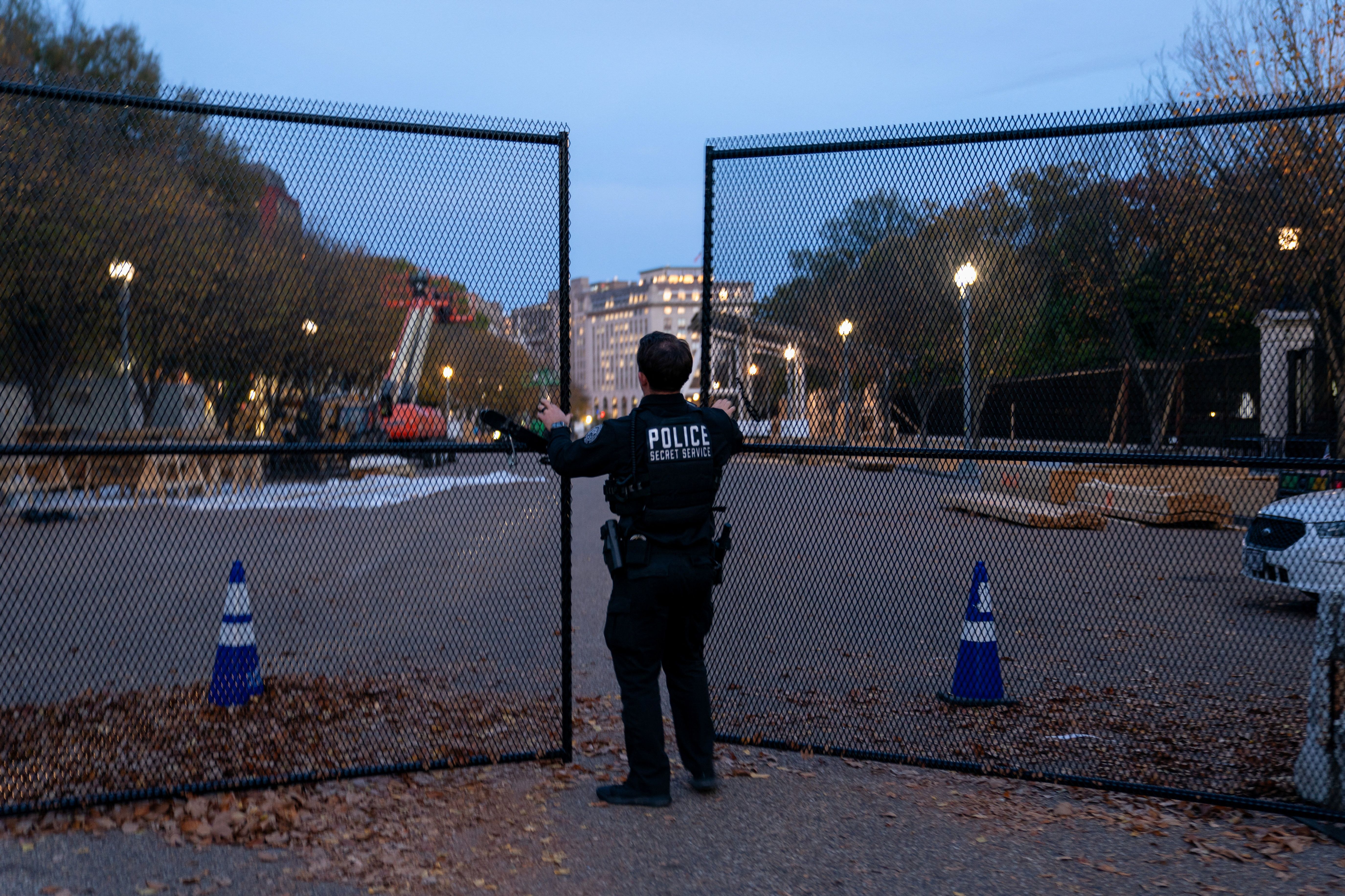 A member of the U.S. Secret Service closes a security gate along Pennsylvania Avenue near the White House on the day before the U.S. presidential election in Washington on November 4, 2024. (Photo by Nathan Howard/Reuters)