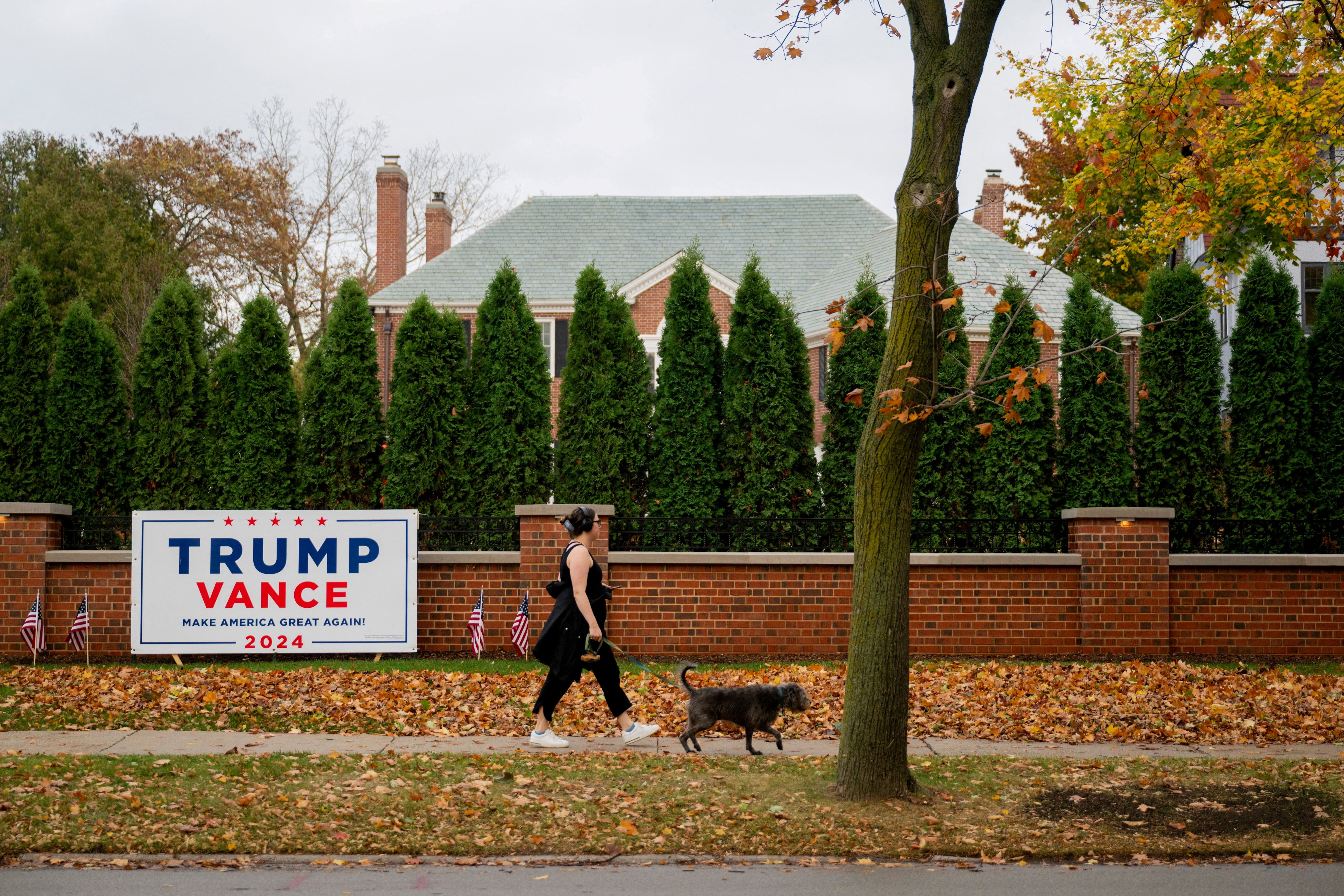 Political signage outside a home in Shorewood, Wisconsin on November 4, 2024. (Photo by Vincent Alban/Reuters)