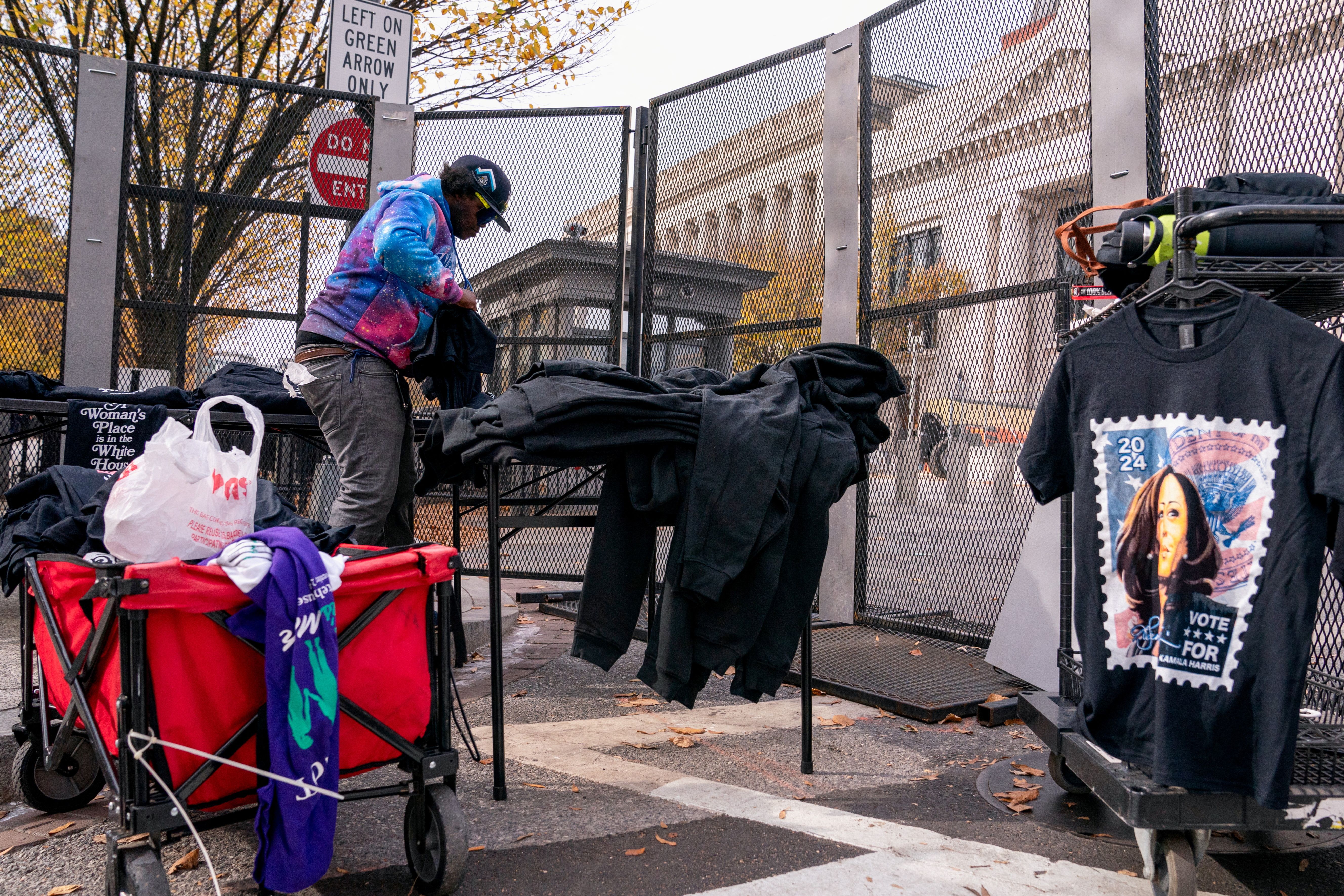 A vendor unpacks merchandise with a theme of Democratic presidential nominee Vice President Kamala Harris near the White House ahead of the presidential election in Washington on November 4, 2024. (Photo by Nathan Howard/Reuters)