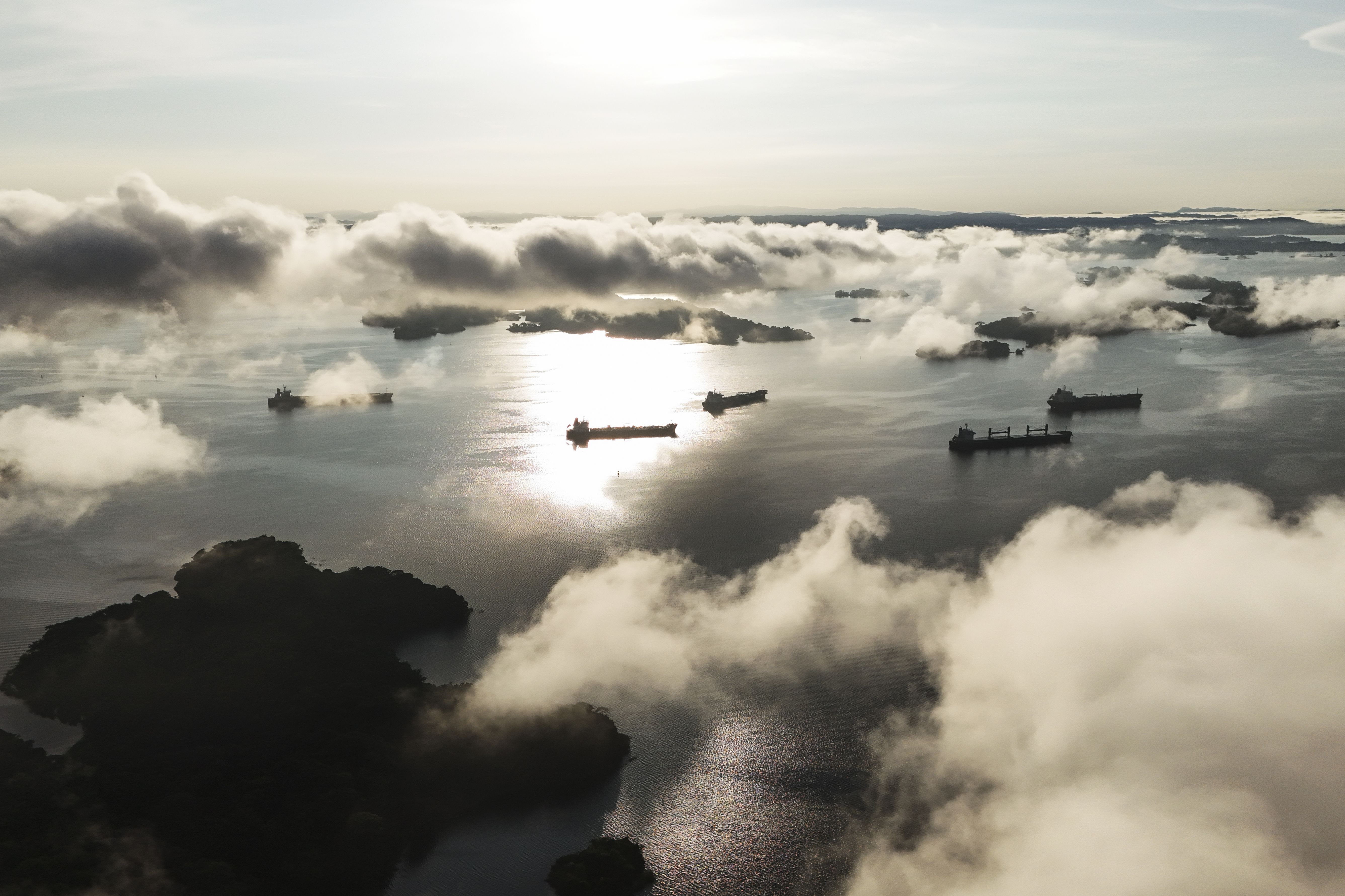 Cargo ships wait to transit the Panama Canal in Gatun Lake in Colon, Panama, September 2, 2024. (Photo by Matias Delacroix/AP Photo)