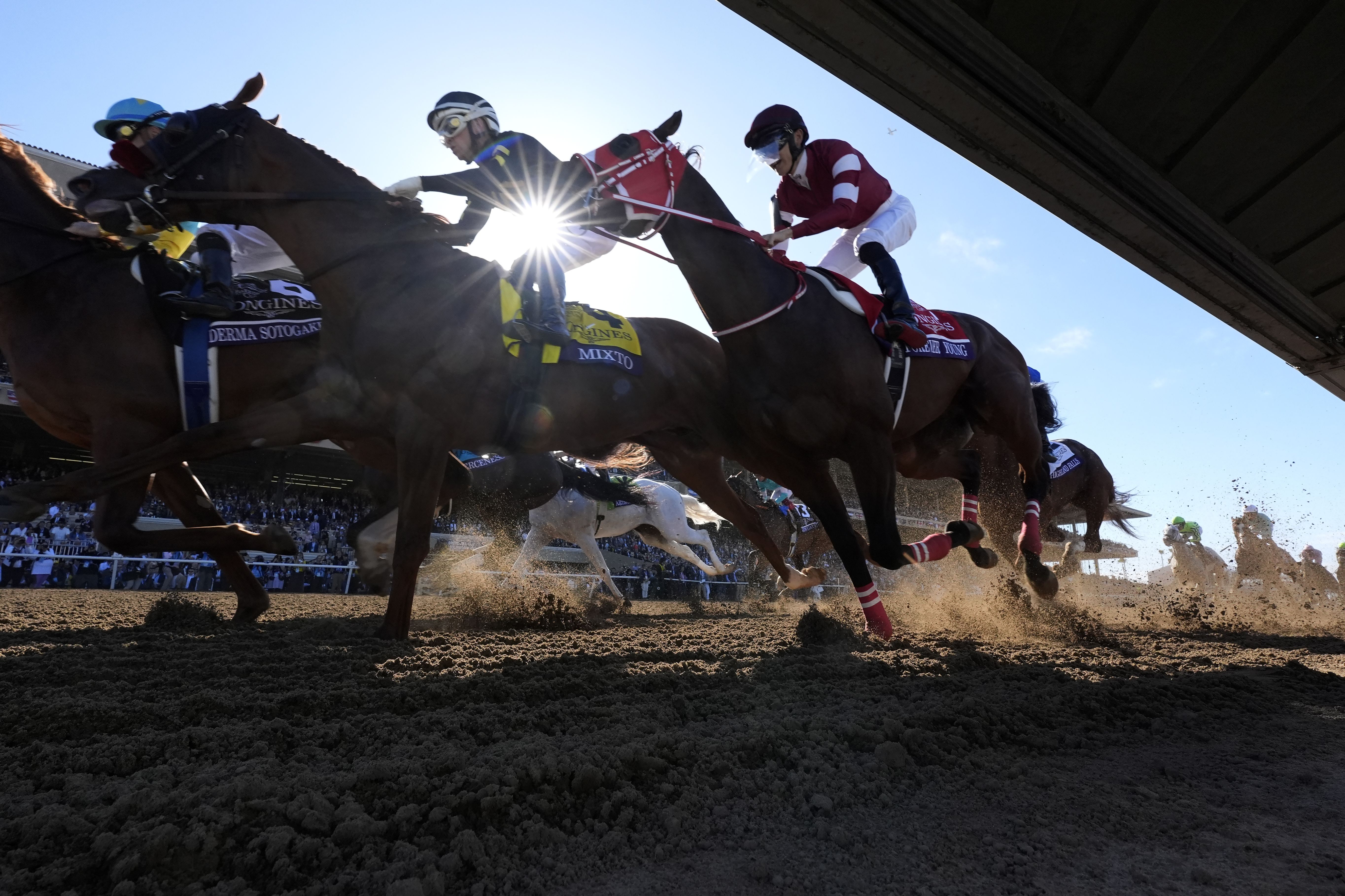 Riders compete in the Breeders' Cup Classic horse race in Del Mar, Calif., Saturday, November 2, 2024. (Photo by Gregory Bull/AP Photo)