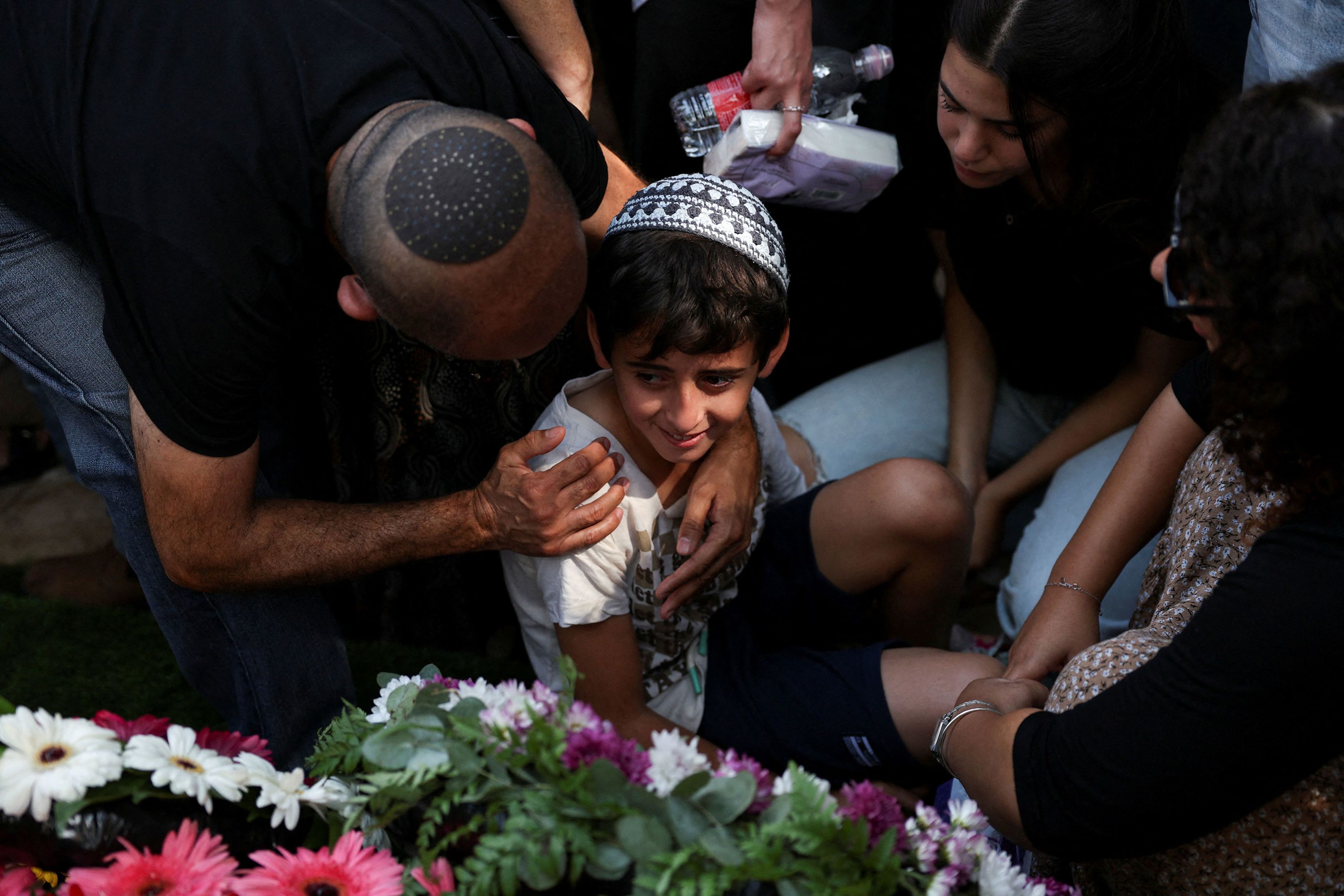 People mourn Israeli Capt. Elad Siman Tov during his funeral in Petah Tikva, Israel, on Friday, October 18, 2024. He was among five Israeli soldiers killed during military operations in southern Lebanon on October 17. Israeli forces have been carrying out ground operations in southern Lebanon as it targets the Iran-backed militant group Hezbollah. (Photo by Violeta Santos Moura/Reuters)