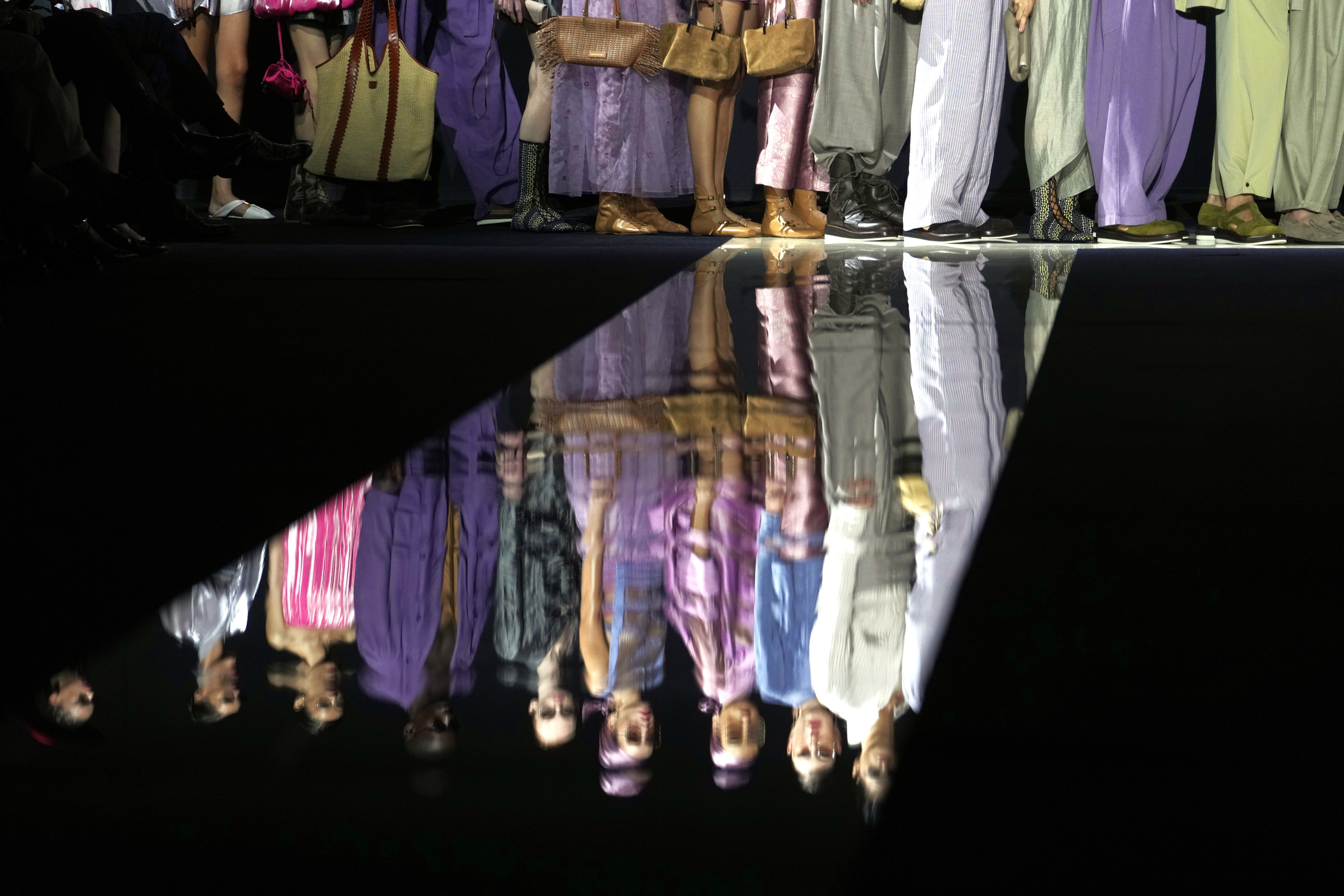 Models wear creations as part of the Emporio Armani Spring Summer 2025 collection that was presented in Milan, Italy, Thursday, September 19, 2024. (Photo by Luca Bruno/AP Photo)