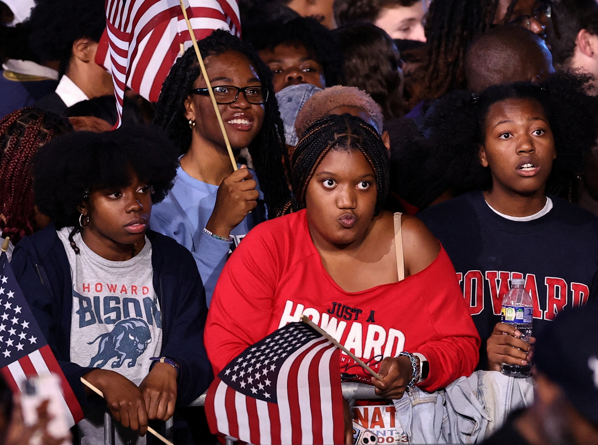 Attendees look on at the event held by Kamala Harris during Election Night, at Howard University in Washington on November 6, 2024. (Photo by Mike Blake/Reuters)