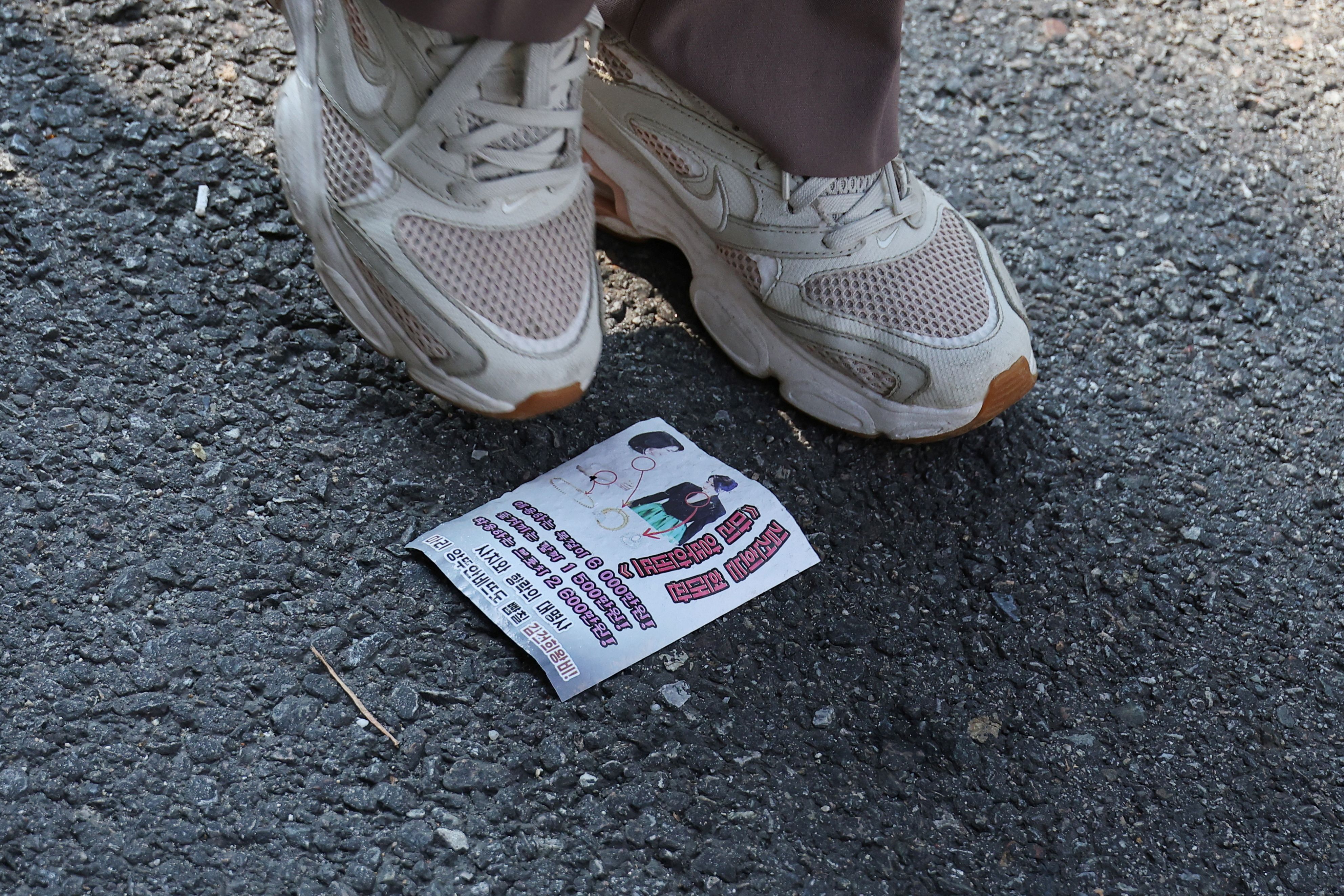 A view of a North Korean propaganda leaflet denouncing South Korean President Yoon Suk Yeol and his wife Kim Keon Hee, apparently carried by balloons sent from North Korea, near the Presidential Office in Seoul, South Korea, on October 24, 2024. (Photo by Kim Hong-Ji/Reuters)