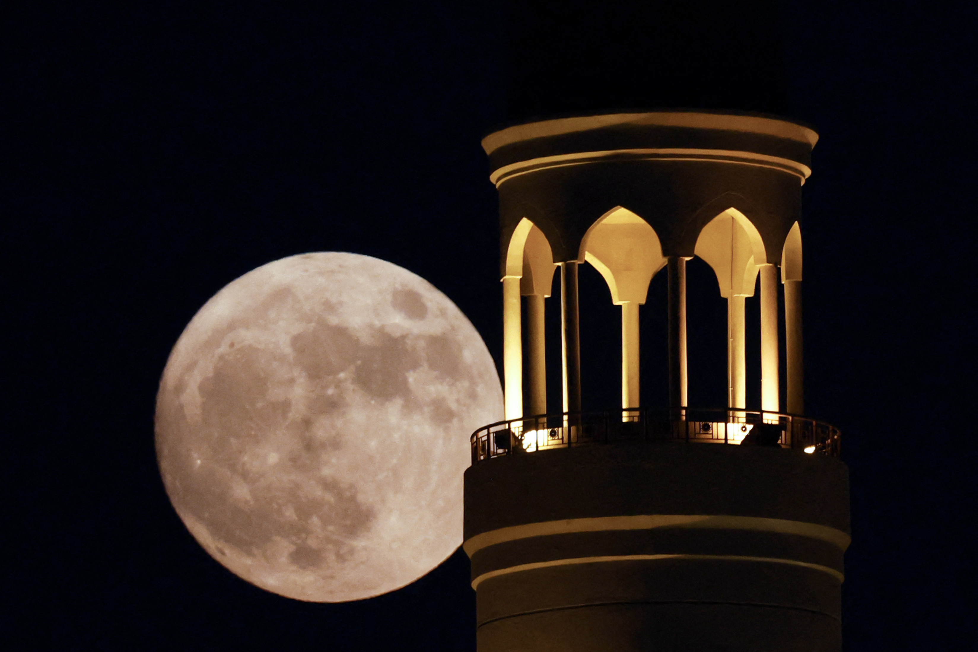 The “Blue Moon” rises over Doha city on August 30, 2023. (Photo by Karim Jaafar/AFP Photo)