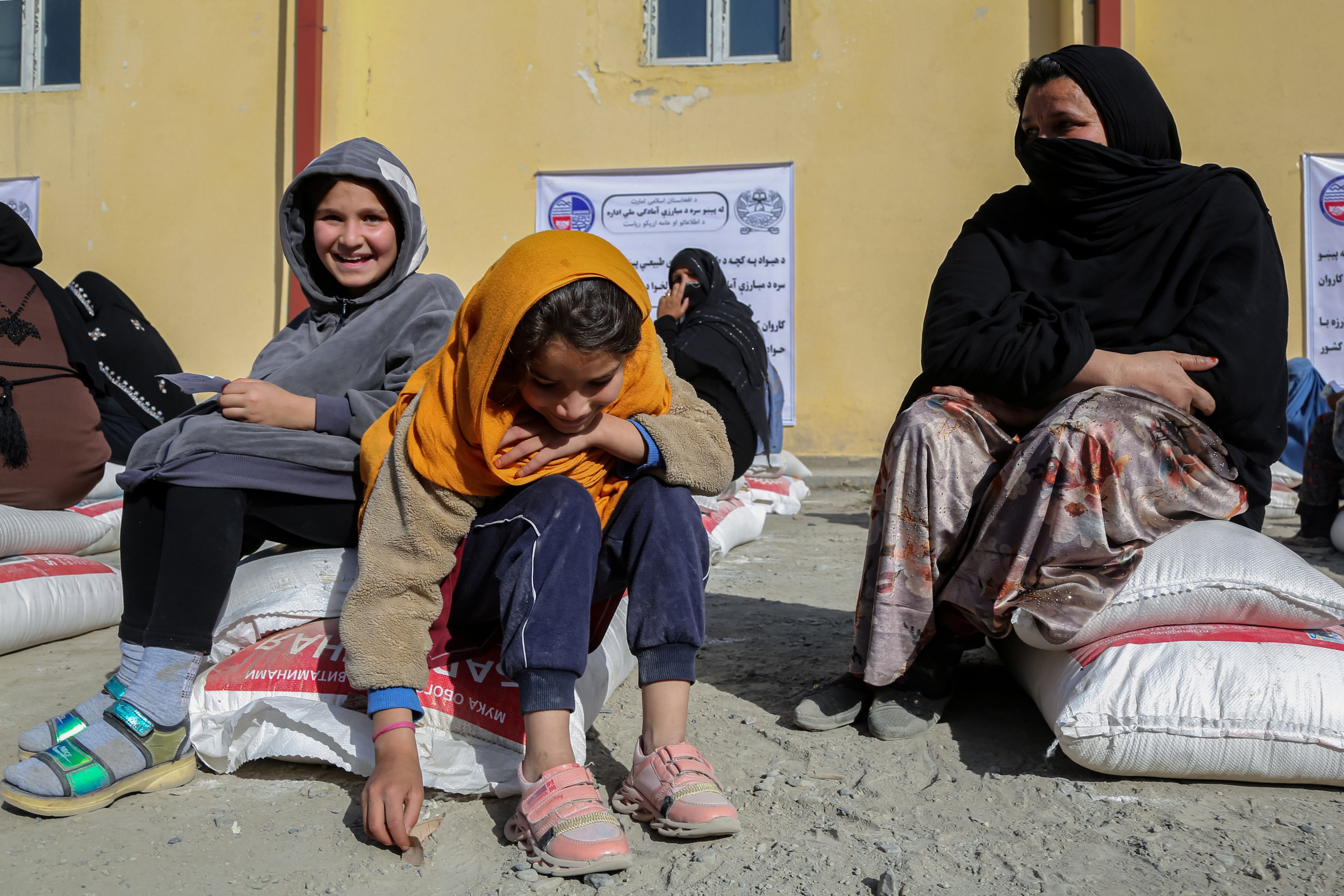 Afghan families receive food rations as part of a program to support 500 families impacted by natural disasters, in Kabul, Afghanistan, 05 November 2024. Disaster Management Authority head Maulvi Nooruddin Turabi has urgently appealed for humanitarian aid, saying 50 percent of Afghan families are in need. Turabi noted that assistance from Uzbekistan and Tajikistan enabled the provision of essential supplies like flour and rice to 500 families affected by natural disasters in Kabul. Over 23 million people in Afghanistan require immediate aid, according to the International Federation of the Red Cross. Natural disasters, climate change, and economic challenges have contributed to the humanitarian crisis. (Photo by Samiullah Popal/EPA/EFE)