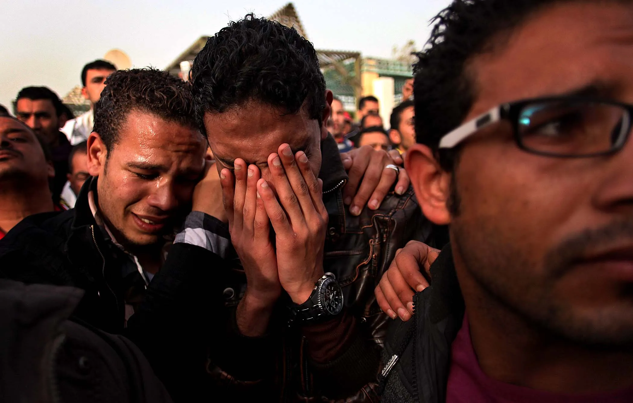 Egyptians mourn during the funeral for Abd Alhaleem Mohanna, 23, who was killed on March 5 during clashes with police, in Port Said. Egypt's police forces have withdrawn from the streets of this restive city on the Suez Canal, handing over security to the military after nearly a week of deadly clashes. (Khalil Hamra/Associated Press)