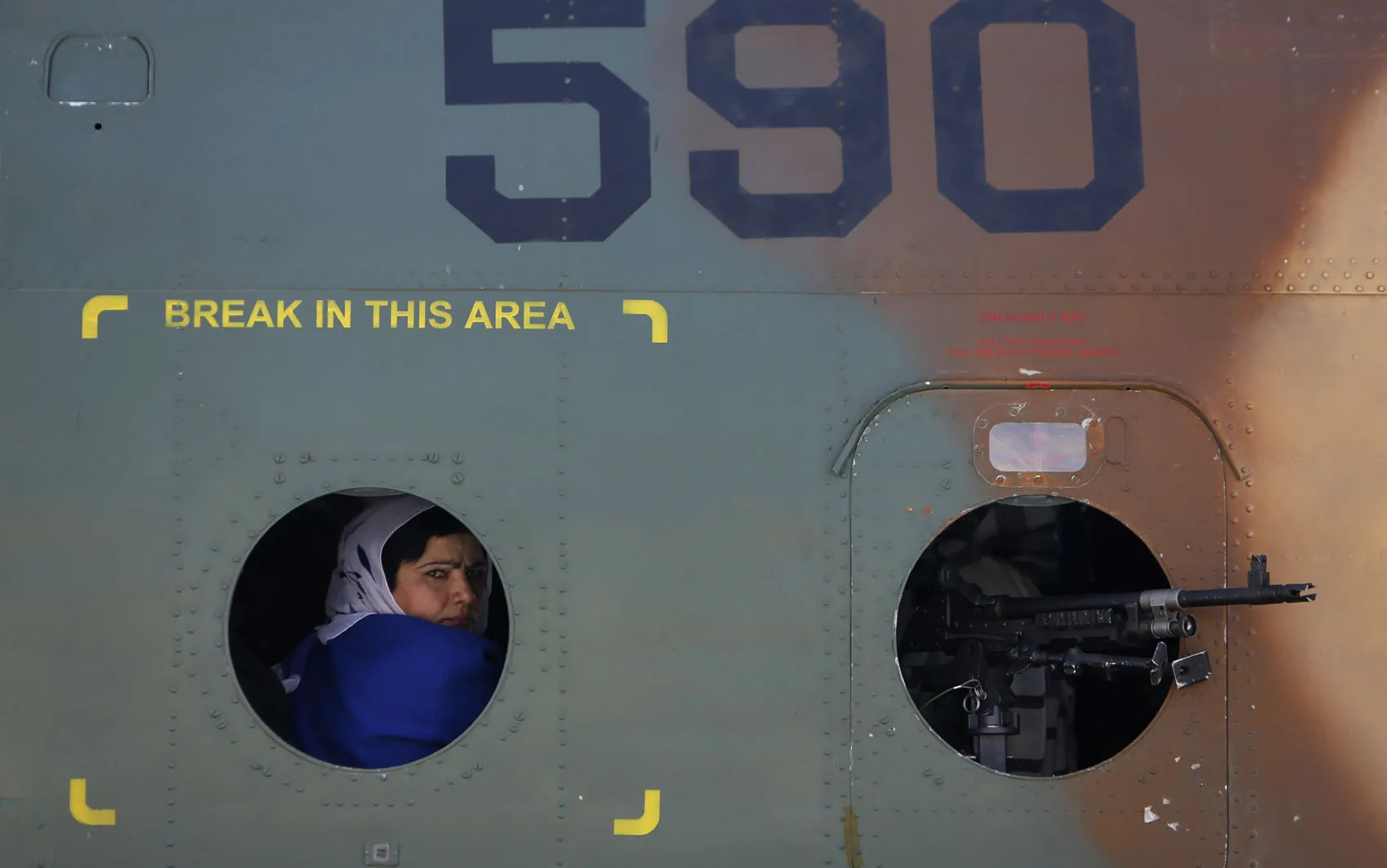 An Afghan woman looks out from a helicopter window at the International Airport in Kabul March 7, 2013. Afghan women take a tour around Kabul to mark International Women's Day. (Photo by Mohammad Ismail/Reuters)