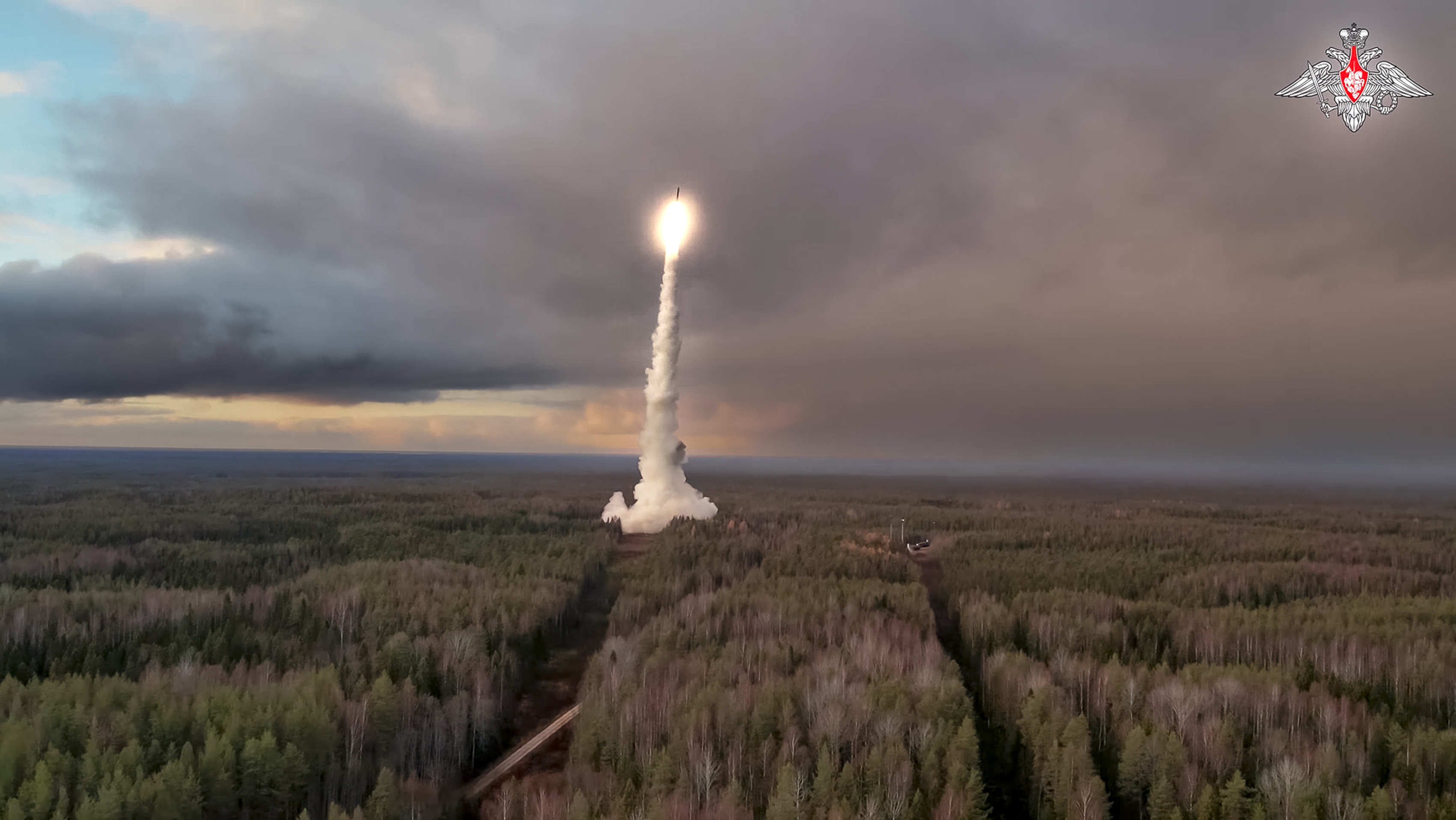 In this photo taken from video distributed by Russian Defense Ministry Press Service on Tuesday, October 29, 2024, A Yars intercontinental ballistic missile is test-fired from the Plesetsk launchpad in northwestern Russia. (Photo by Russian Defense Ministry Press Service via AP Photo)