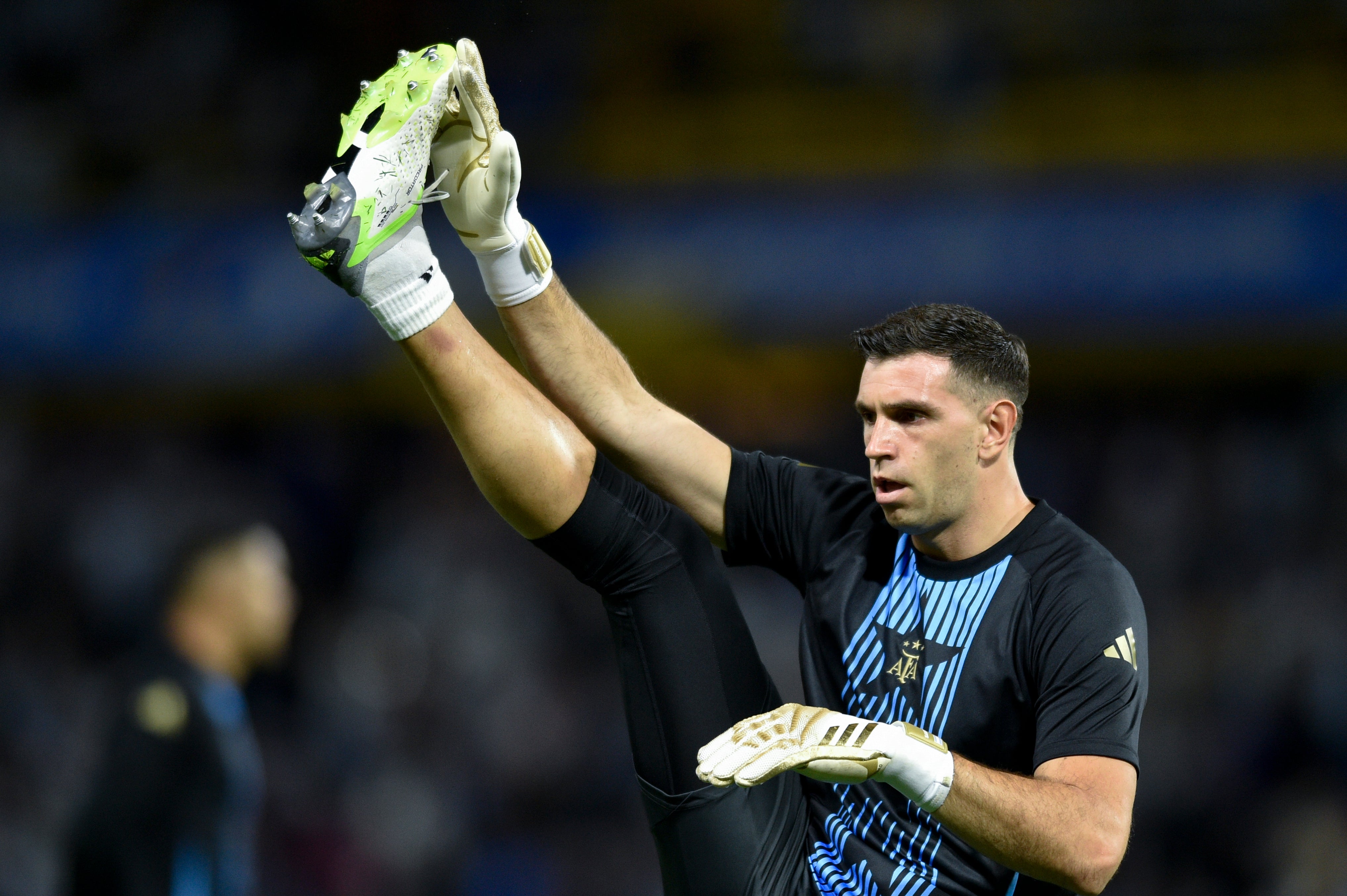 Argentina's goalkeeper Emiliano MartÌnez warms up prior to a qualifying soccer match for the FIFA World Cup 2026 between Argentina and Peru at the Bombonera stadium in Buenos Aires, Argentina, Tuesday, November 19, 2024. (Photo by Gustavo Garello/AP Photo)