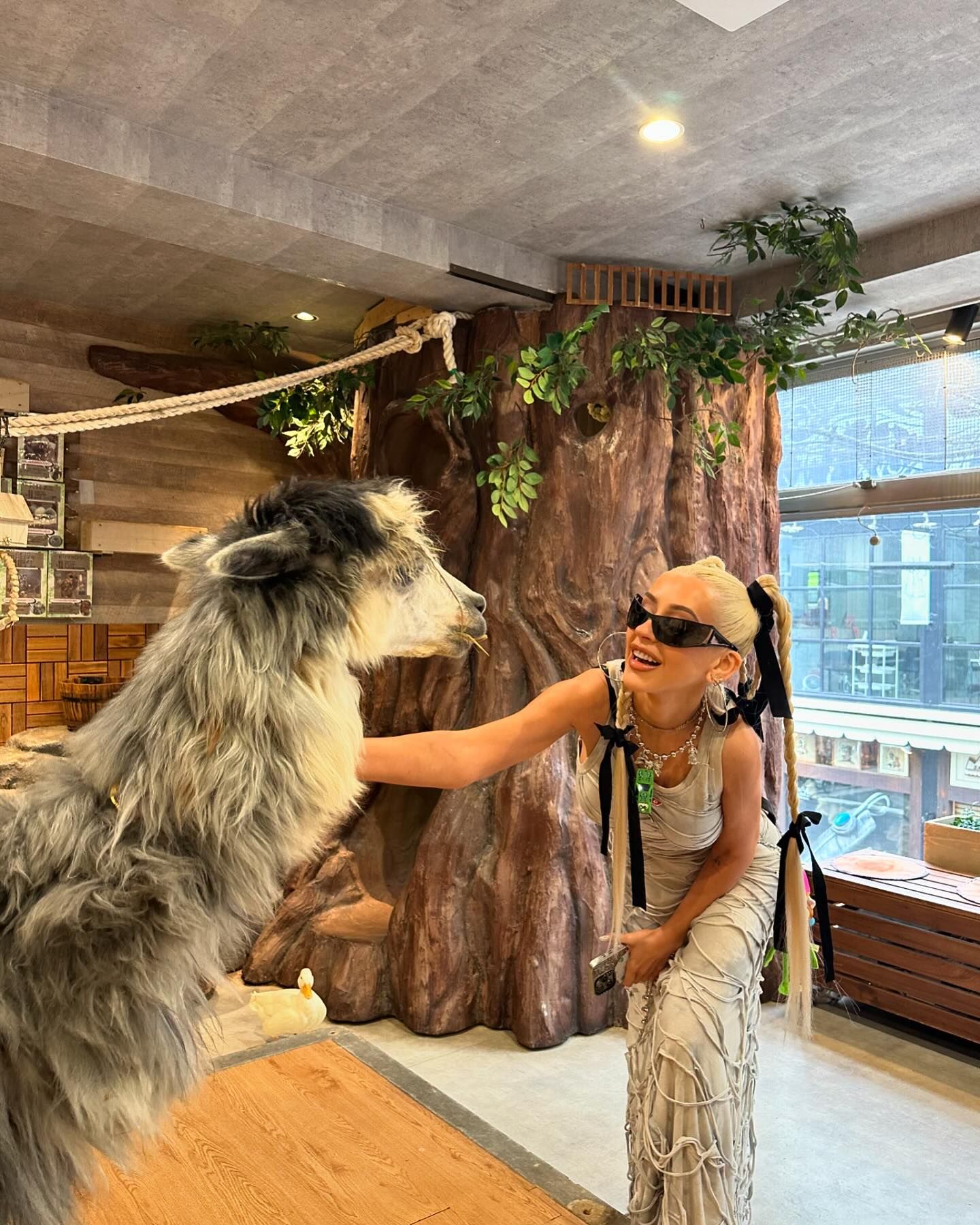 American singer-songwriter Christina Aguilera makes friends with an alpaca in the second decade of November 2024. (Photo by xtina/Instagram)