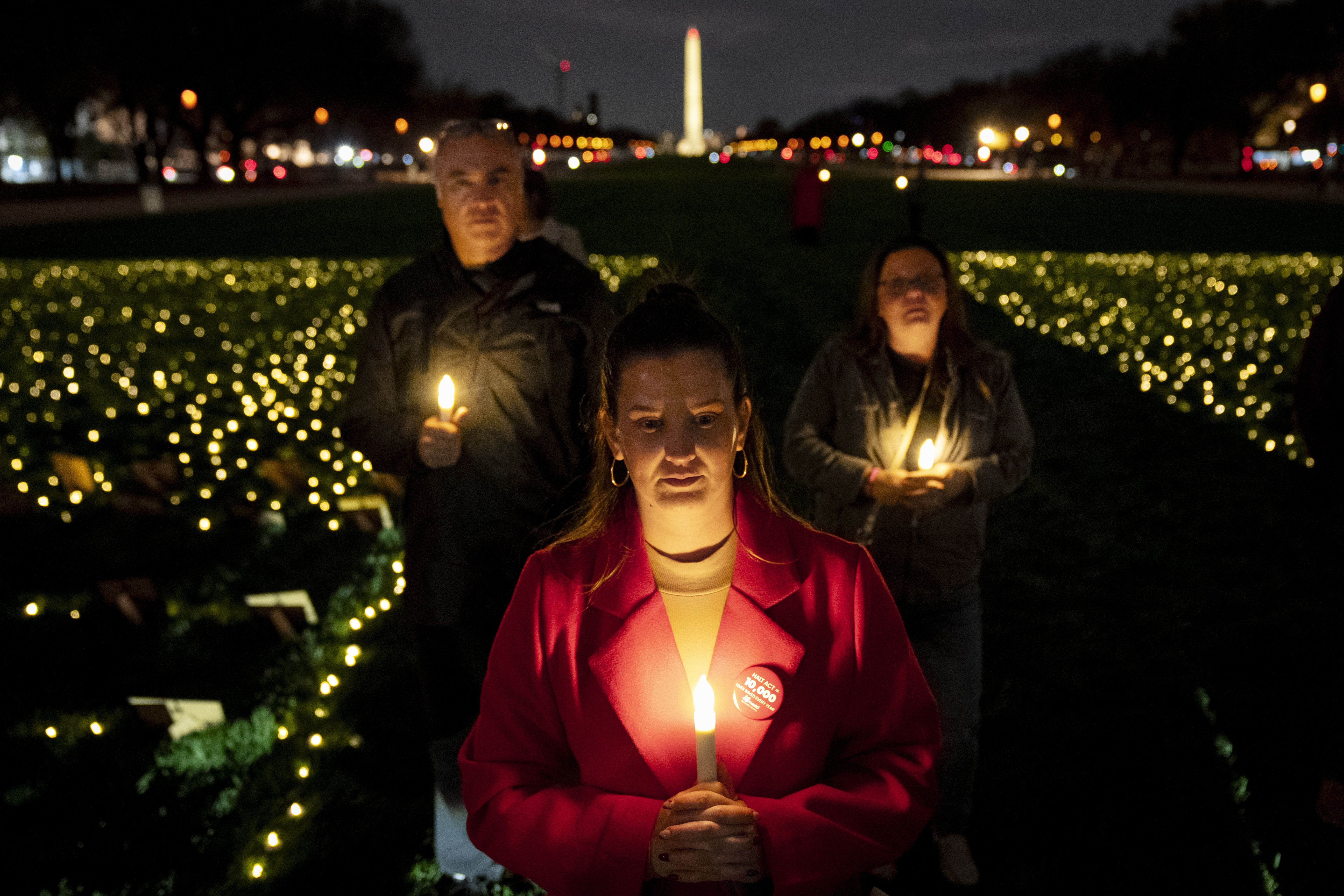 Rachel Lamar of Ft. Lauderdale, Fla., a member of Mothers Against Drunk Driving (MADD), attends a candlelight vigil for people killed by drunk drivers, Tuesday, November 19, 2024, on the National Mall, in Washington. (Photo by Jacquelyn Martin/AP Photo)