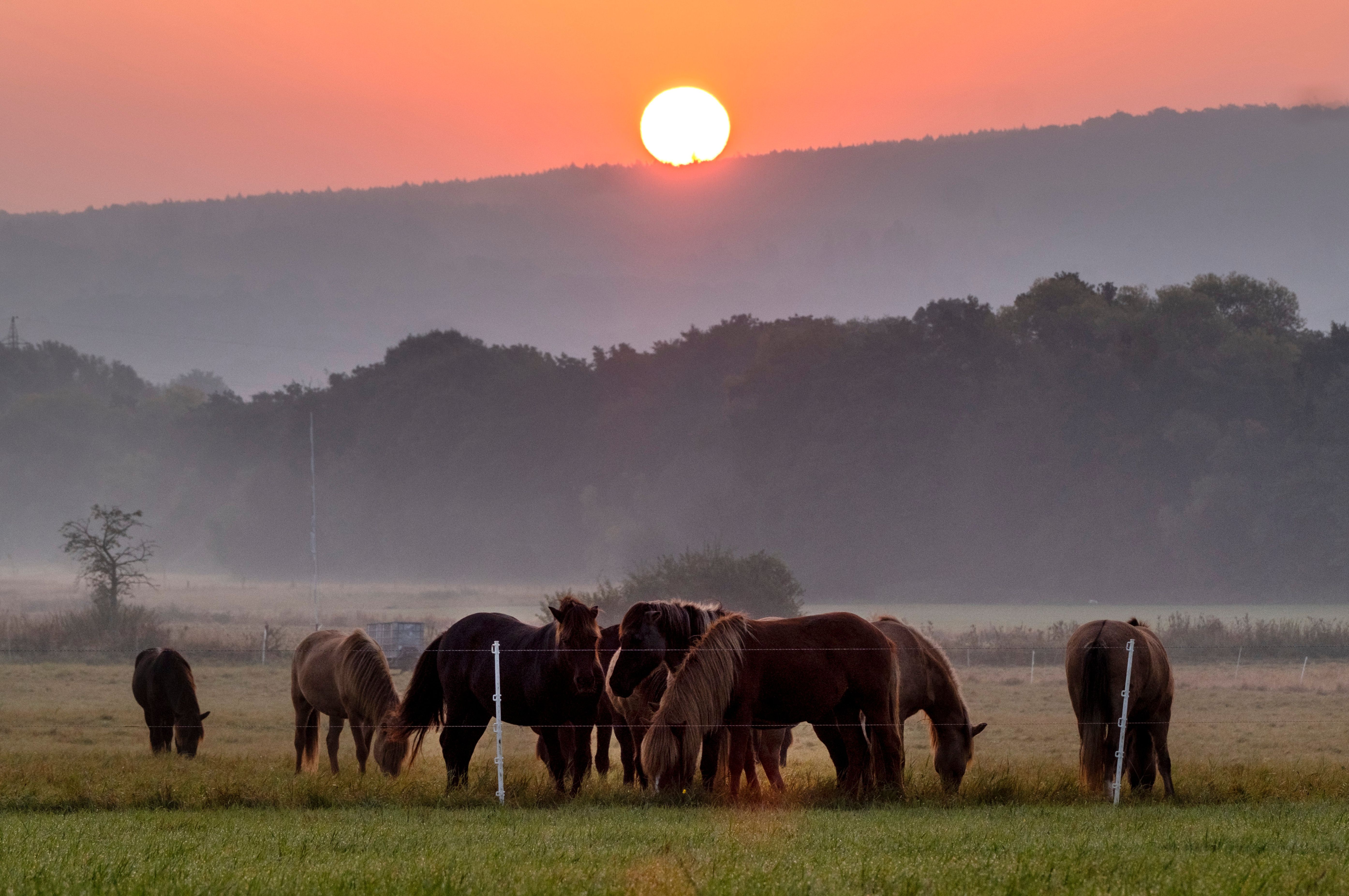 Icelandic horses graze on a meadow on the outskirts of Wehrheim near Frankfurt, Germany, Thursday, September 19, 2024. (Photo by Michael Probst/AP Photo)