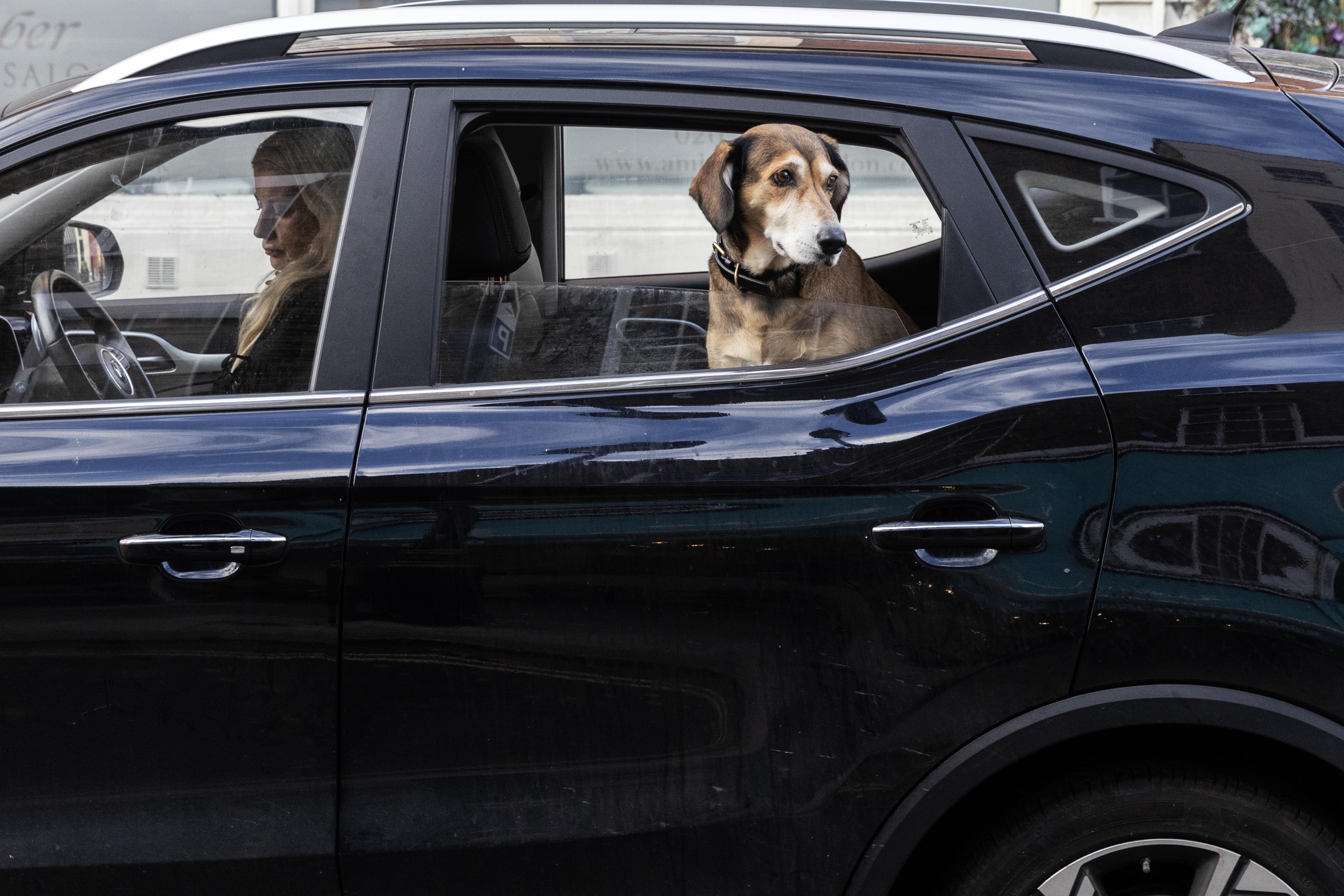 Puppy-dog eyes peer out at passing shoppers near Marylebone, central London on November 20, 2024. (Photo by Jack Hill/Times Media Ltd)