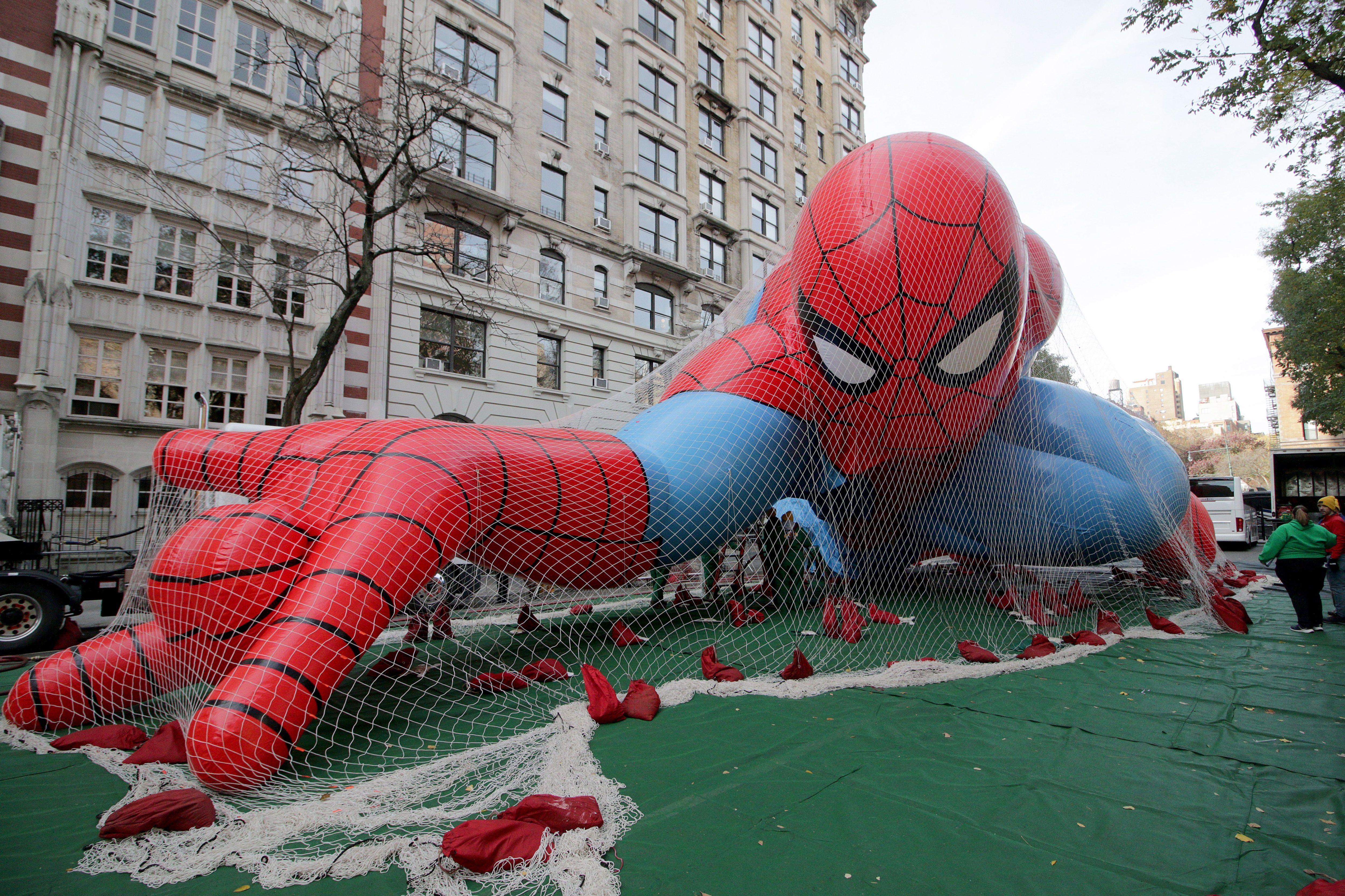 Macy’s employees use hoses and giant nets to inflate one of the many balloons for the annual Macy’s Thanksgiving Day Parade in New York City, United States on November 27, 2024. Spider-Man was joined by the Haribo Gold Bear, Dora the Explorer, Ronald McDonald and Minnie Mouse. (Photo by Andrew Schwartz/Splash News and Pictures)