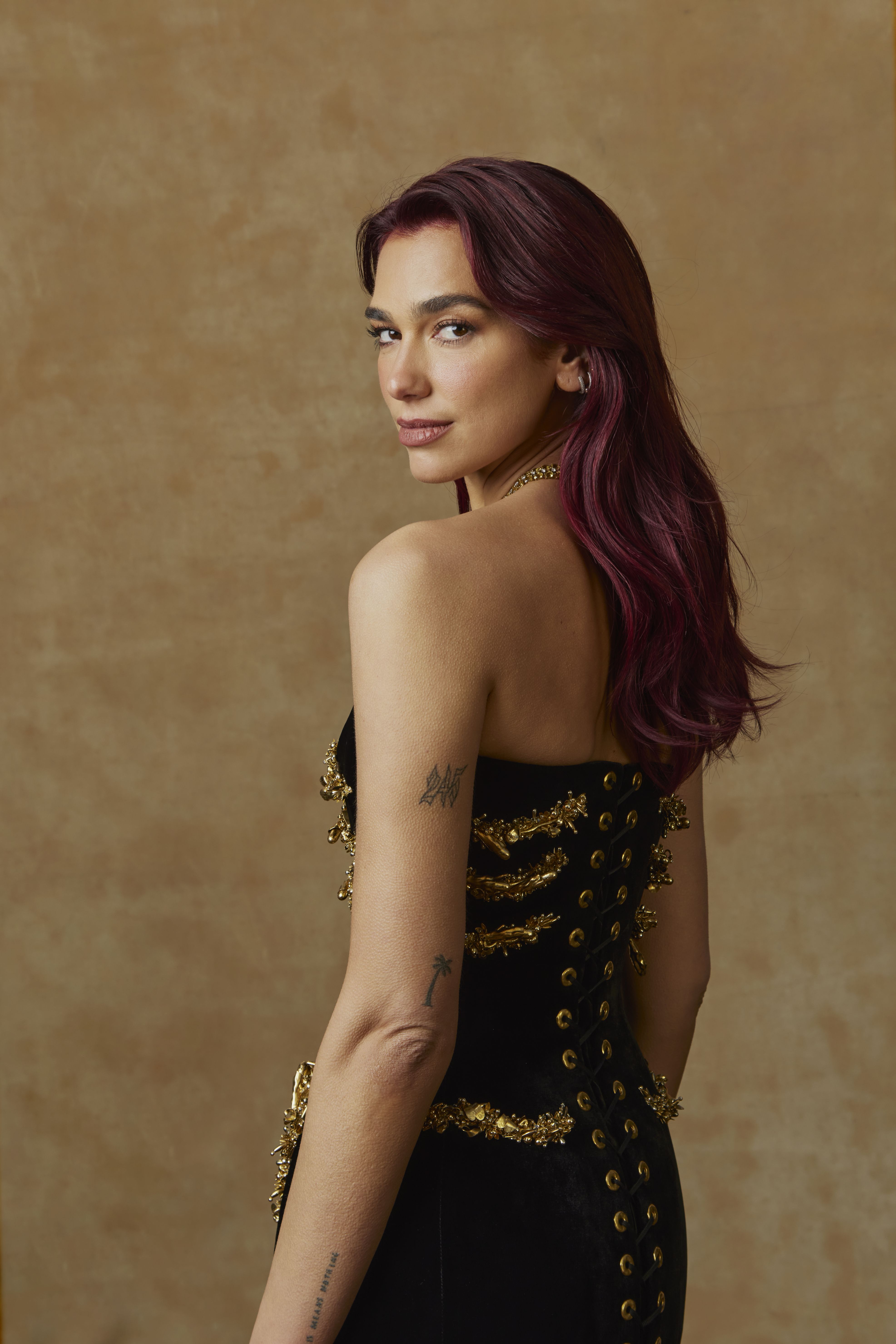 English-Albanian singer and songwriter Dua Lipa at the portrait booth at the 81st Golden Globe Awards held at the Beverly Hilton Hotel on January 7, 2024 in Beverly Hills, California. (Photo by Dan Doperalski/Golden Globes 2024/Golden Globes 2024 via Getty Images)