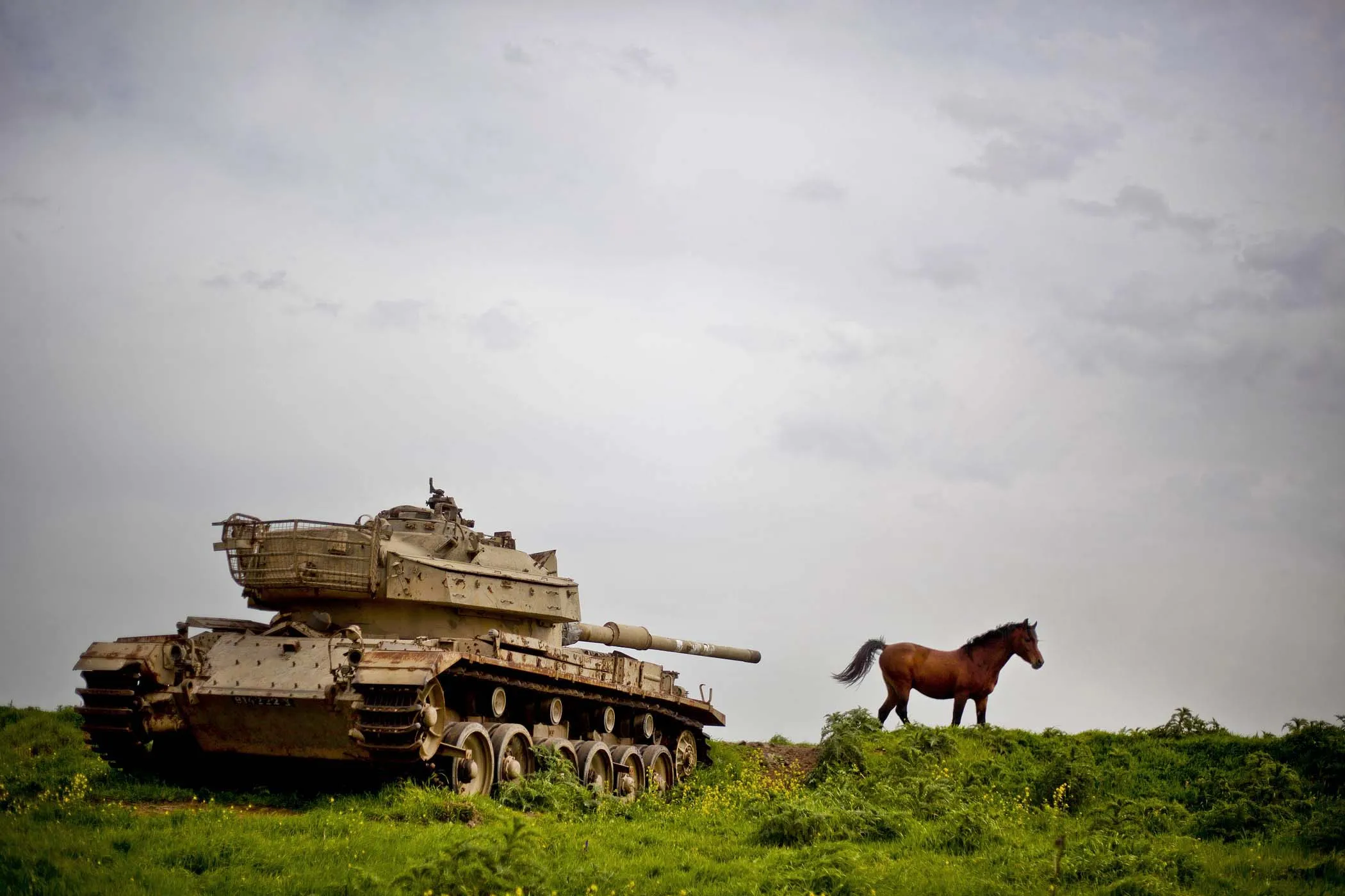A horse runs in a pasture next to an old Israeli tank in the Israeli-controlled Golan Heights on the border with Syria, March 8, 2013. (Photo by Ariel Schalit/Associated Press)