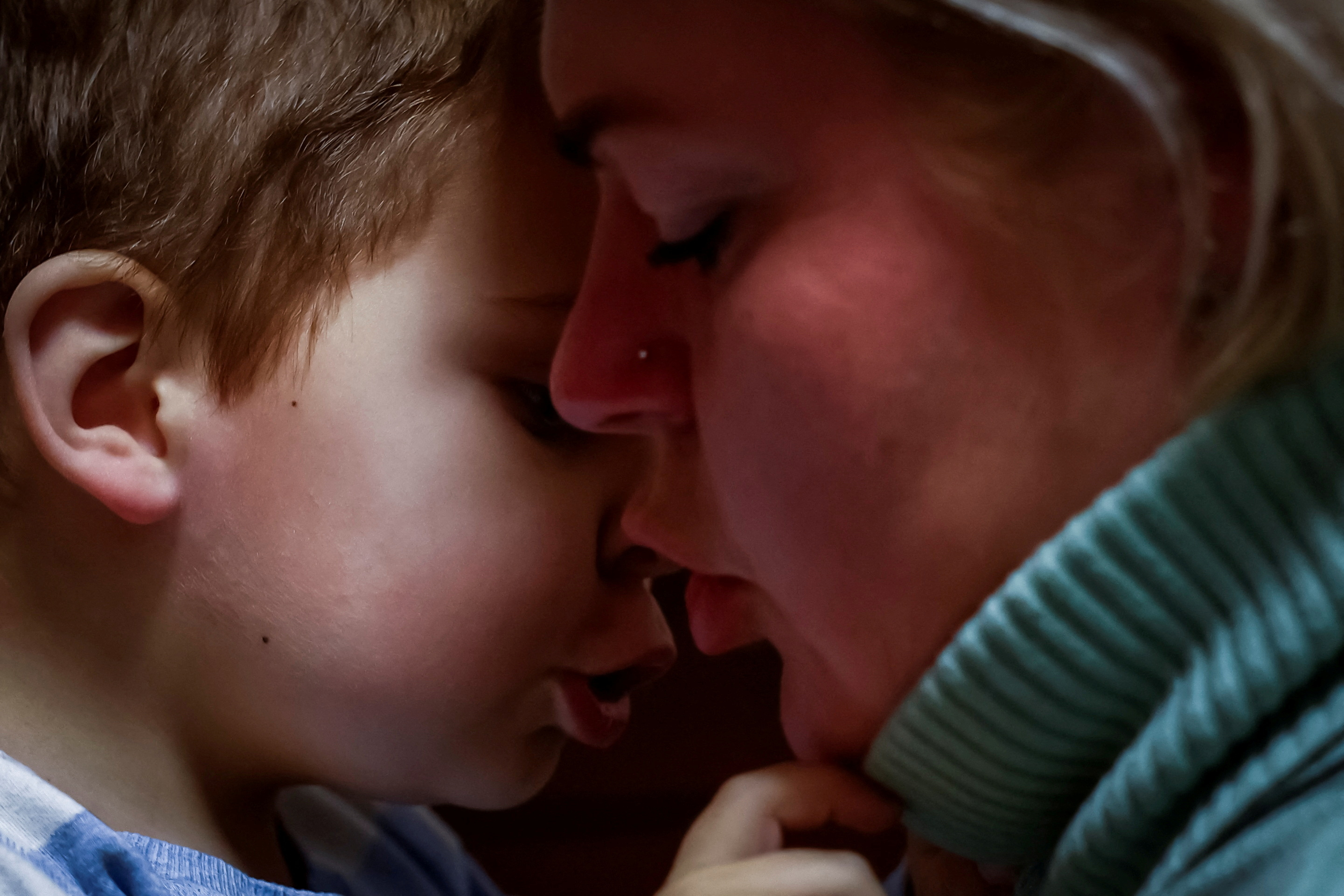 Liudmyla Rodchenko, 42-years-old, plays with her son Yevhen, 2-years-old, at home, amid Russia's attack on Ukraine, in the town of Bucha in Kyiv region, Ukraine, on November 7, 2024. (Photo by Alina Smutko/Reuters)