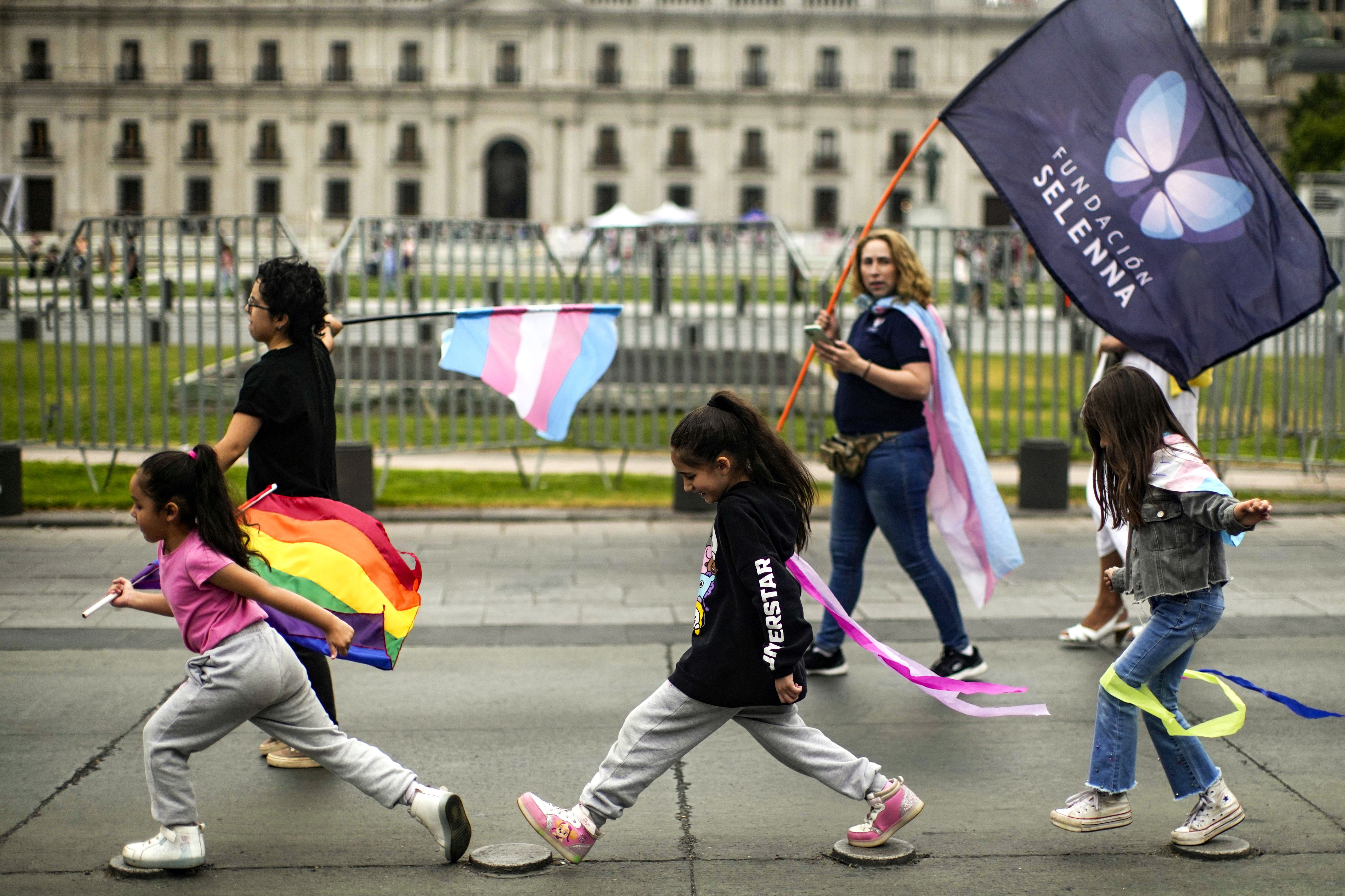 Children representing the We Are Selenna transgender foundation march past the presidential palace, in the annual Gay Pride parade in Santiago, Chile, Saturday, November 16, 2024. (Photo by Esteban Felix/AP Photo)