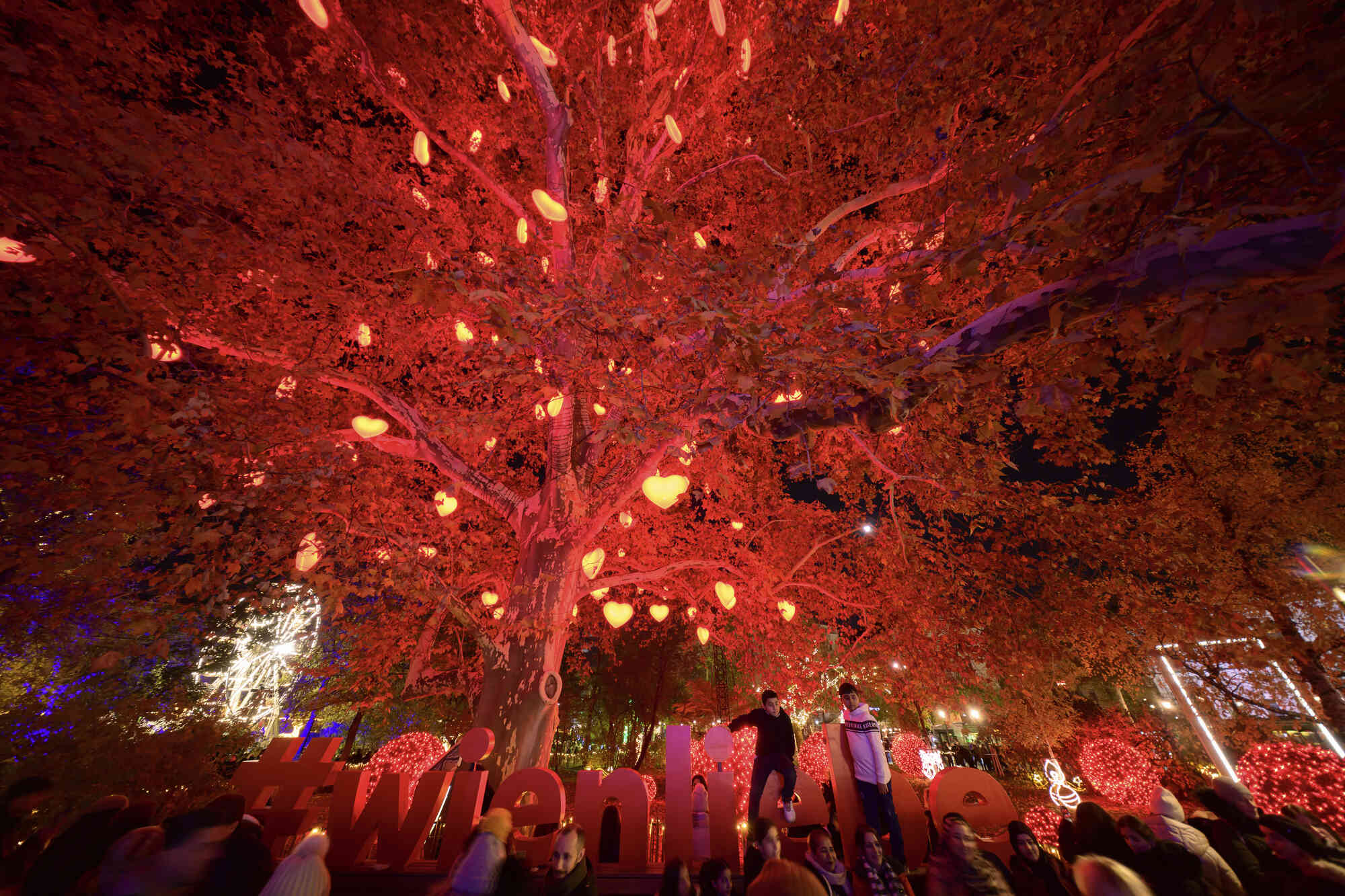 People crowd the Wiener Chritkindlmarkt in front of Vienna's city hall, one of Vienna's most popular Christmas markets, in Vienna, Austria, Saturday, November 16, 2024. (Photo by Christian Bruna/AP Photo)