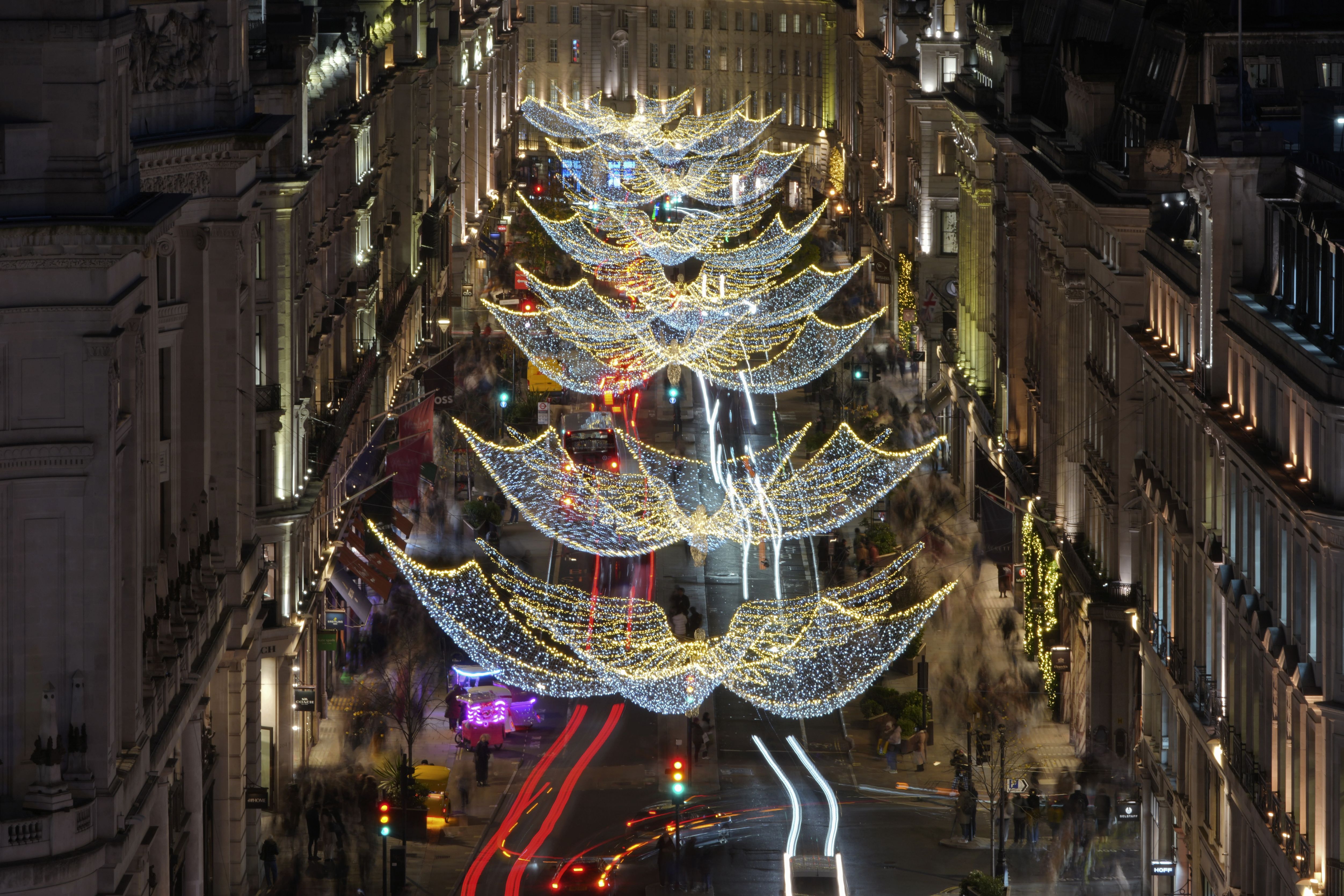 Christmas lights are displayed on Regent Street, in London, Wednesday, November 20, 2024. (Photo by Kin Cheung/AP Photo)