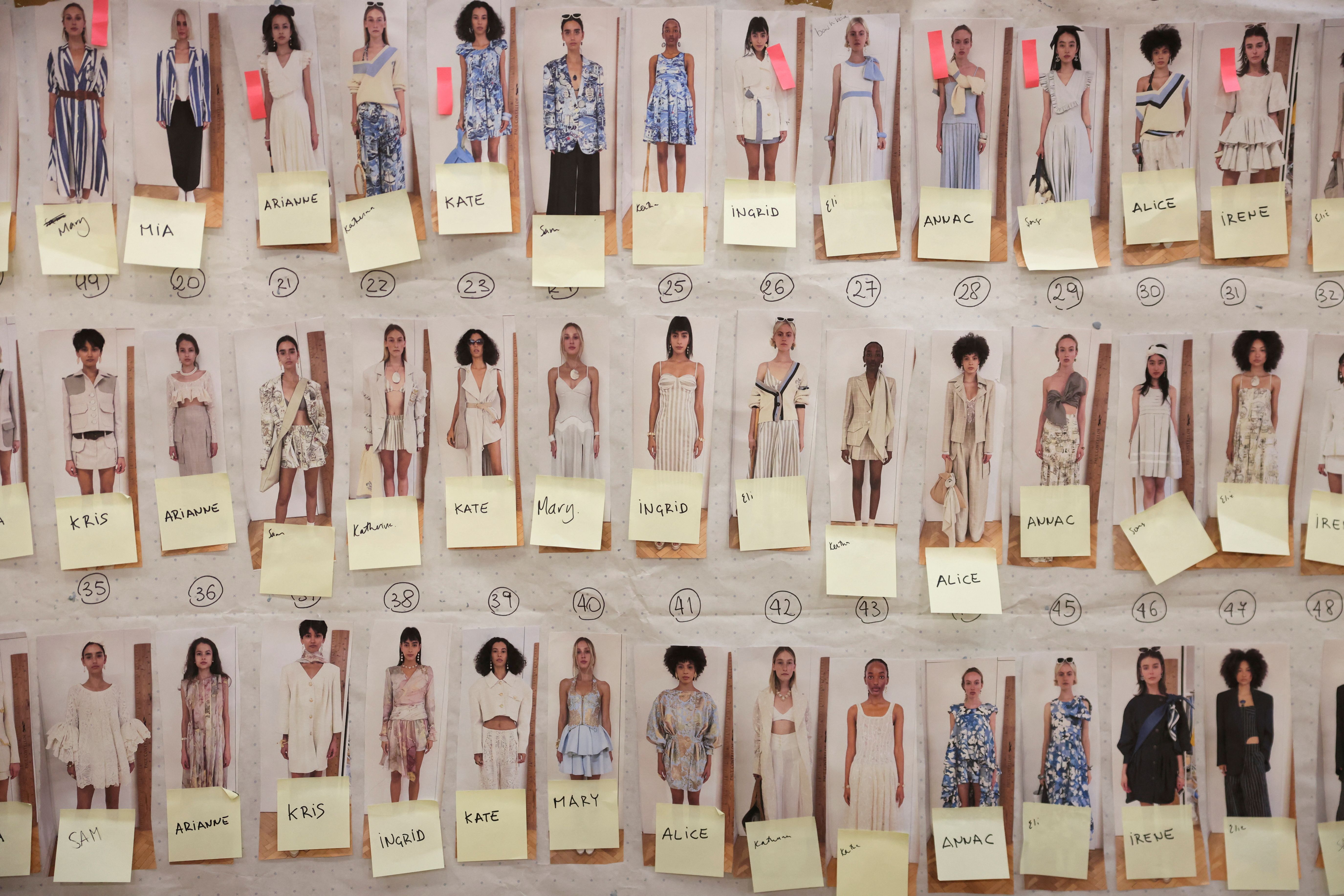 Runway looks chart is seen at a backstage during a rehearsal of the Paul Costelloe catwalk show during London Fashion Week in London, Britain on September 15, 2023. (Photo by Hollie Adams/Reuters)
