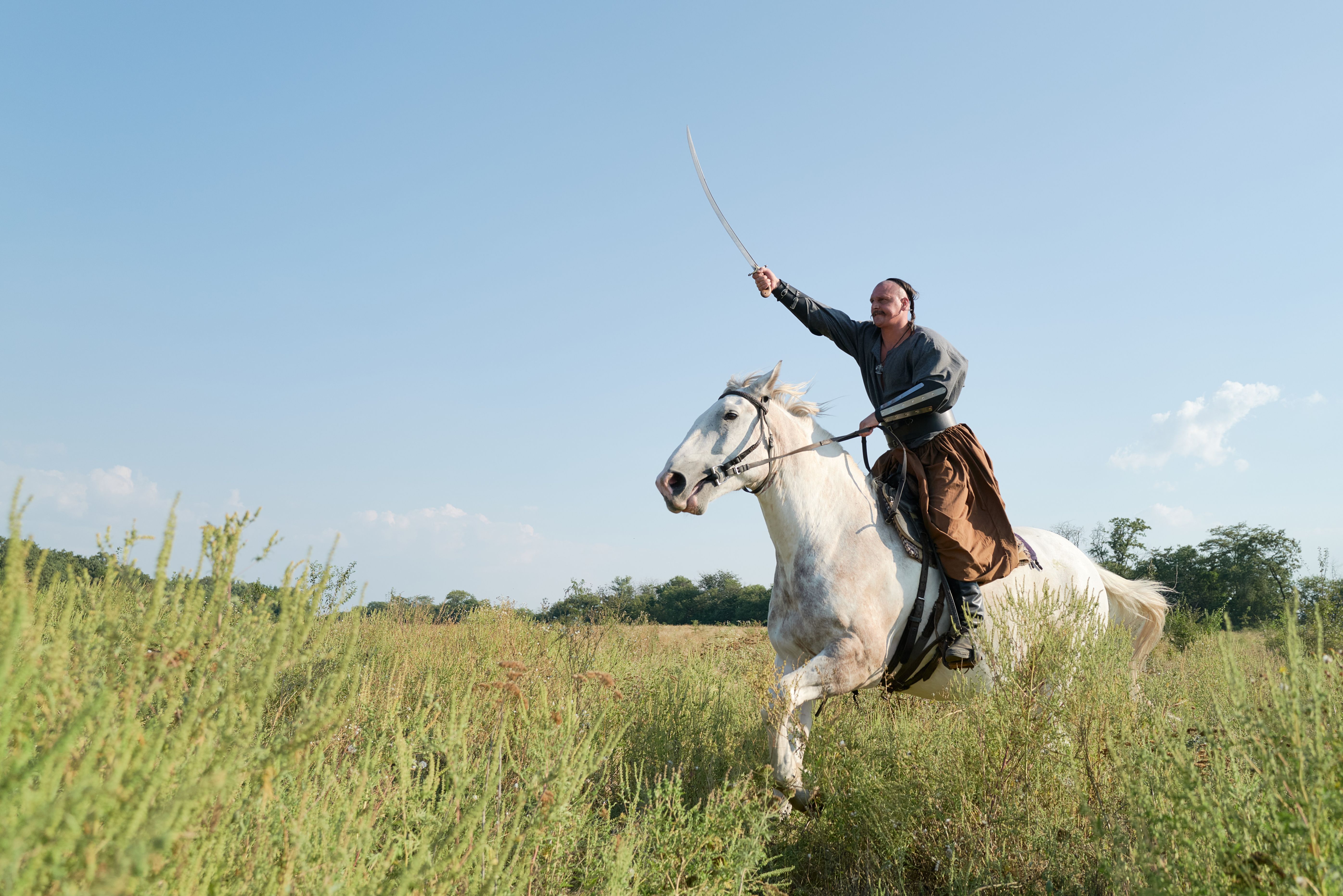 Ukrainian Cossack Paliy trains with a horse in a field on September 6, 2023 in Zaporizhzhia, Ukraine. Paliy is a member of a group of eight Ukrainian Cossacks, two of whom died fighting Russian forces on the frontline. The other members are currently enrolled in the Ukrainian forces. Zaporizhzhia is traditionally the region of Ukrainian Cossack. (Photo by Pierre Crom/Getty Images)