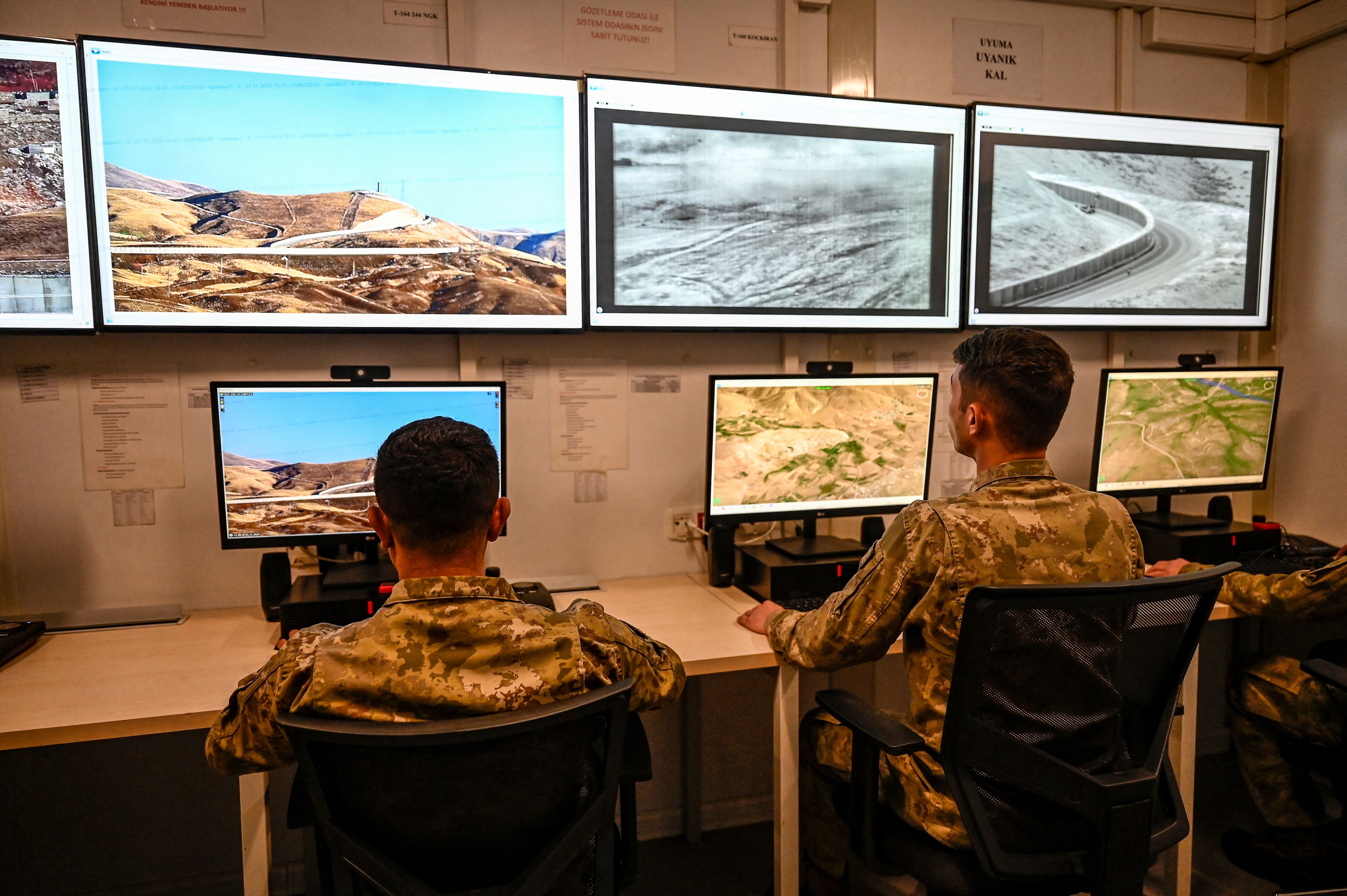 Turkish soldiers monitor the border in a military base at the border line between Turkey and Iran in Van, eastern Turkey, on November 1, 2024. (Photo by Ozan Kose/AFP Photo)