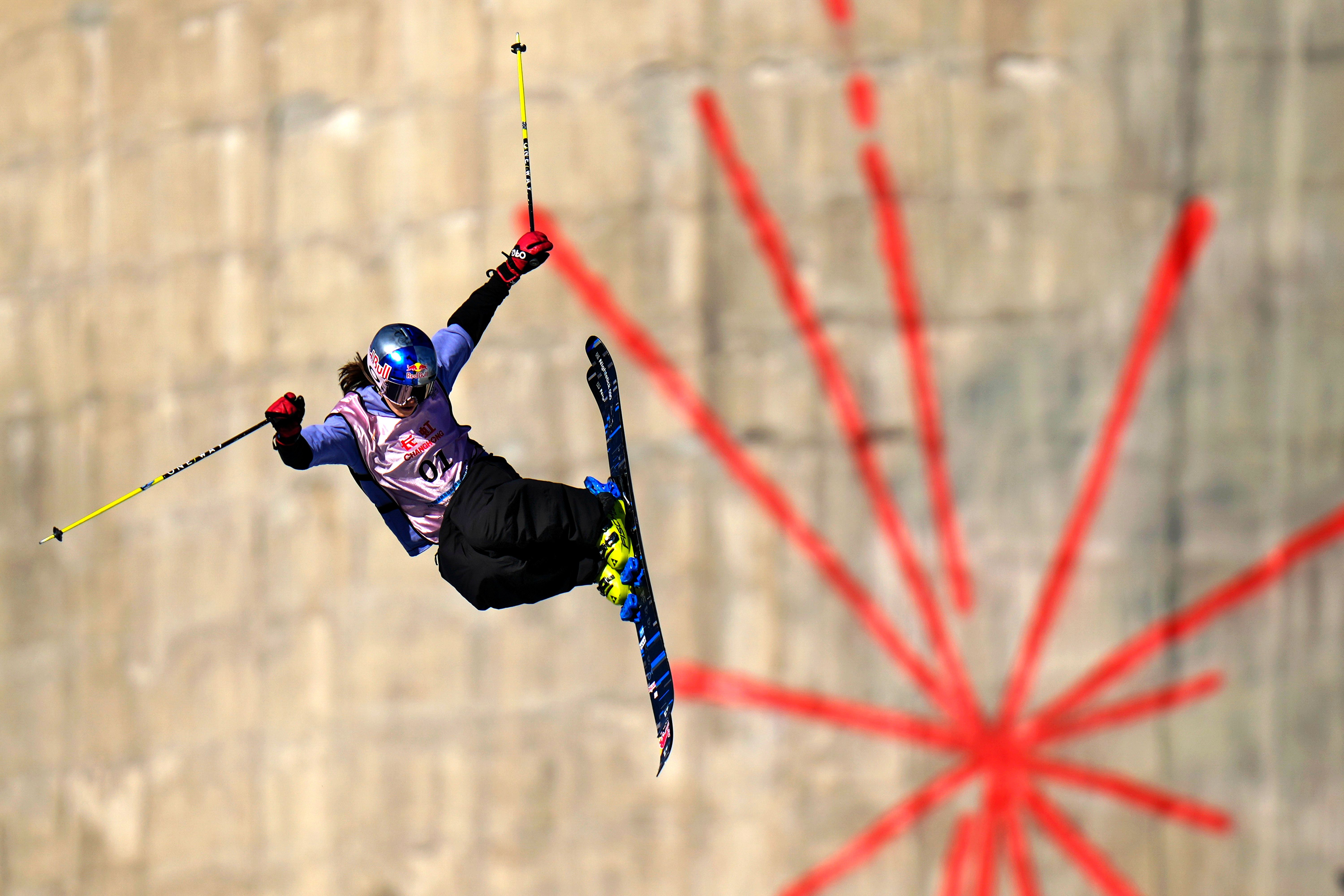 Mathilde Gremaud of Switzerland competes in the women's Freeski Big Air qualifying round during the FIS Snowboard & Freeski World Cup 2024 at the Shougang Park in Beijing, Friday, November 29, 2024. (Photo by Andy Wong/AP Photo)
