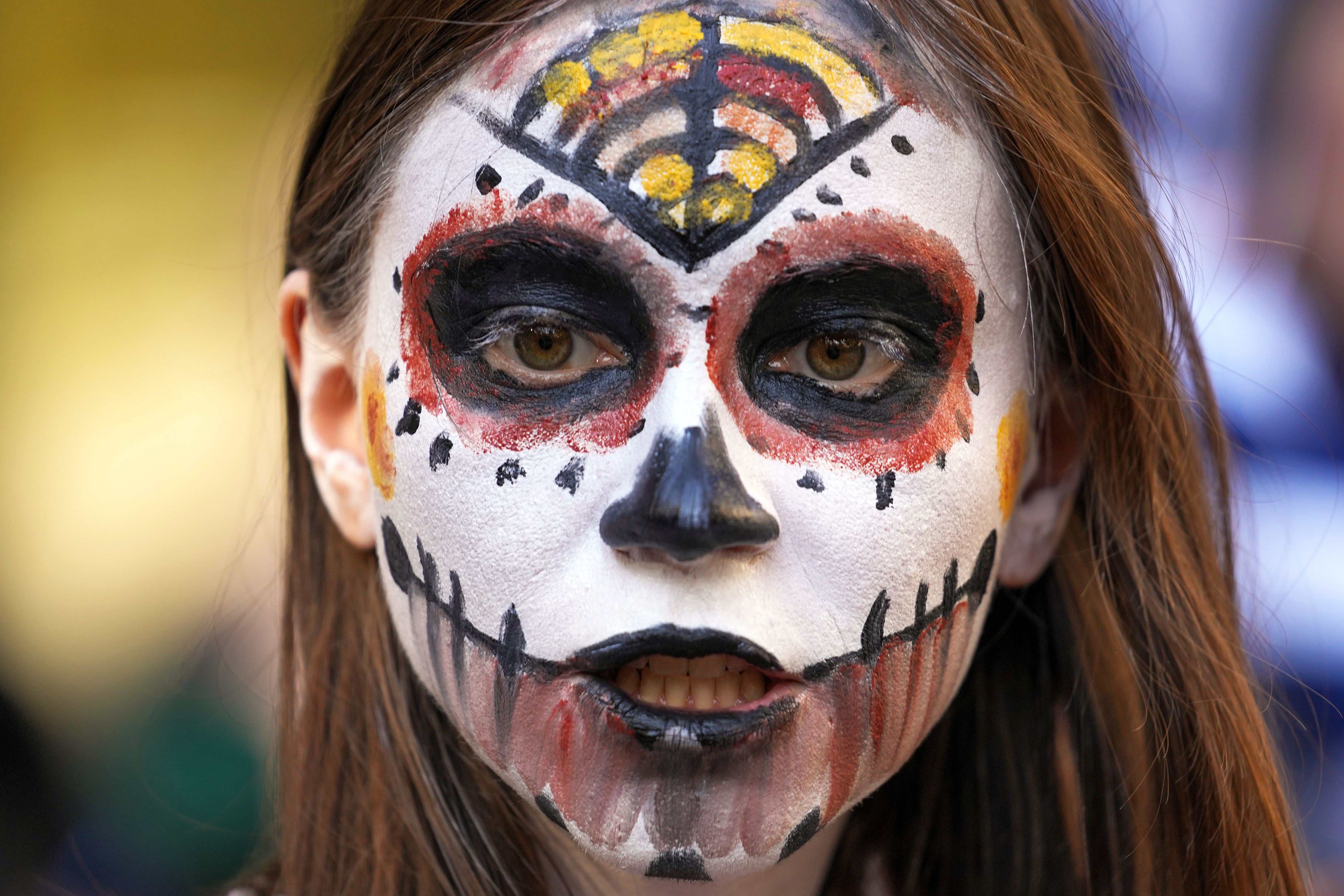 A participant watches as they act their roles dressed as zombies during a Zombie Walk in Belgrade, Serbia, Saturday, September 30, 2023. (Photo by Darko Vojinovic/AP Photo)