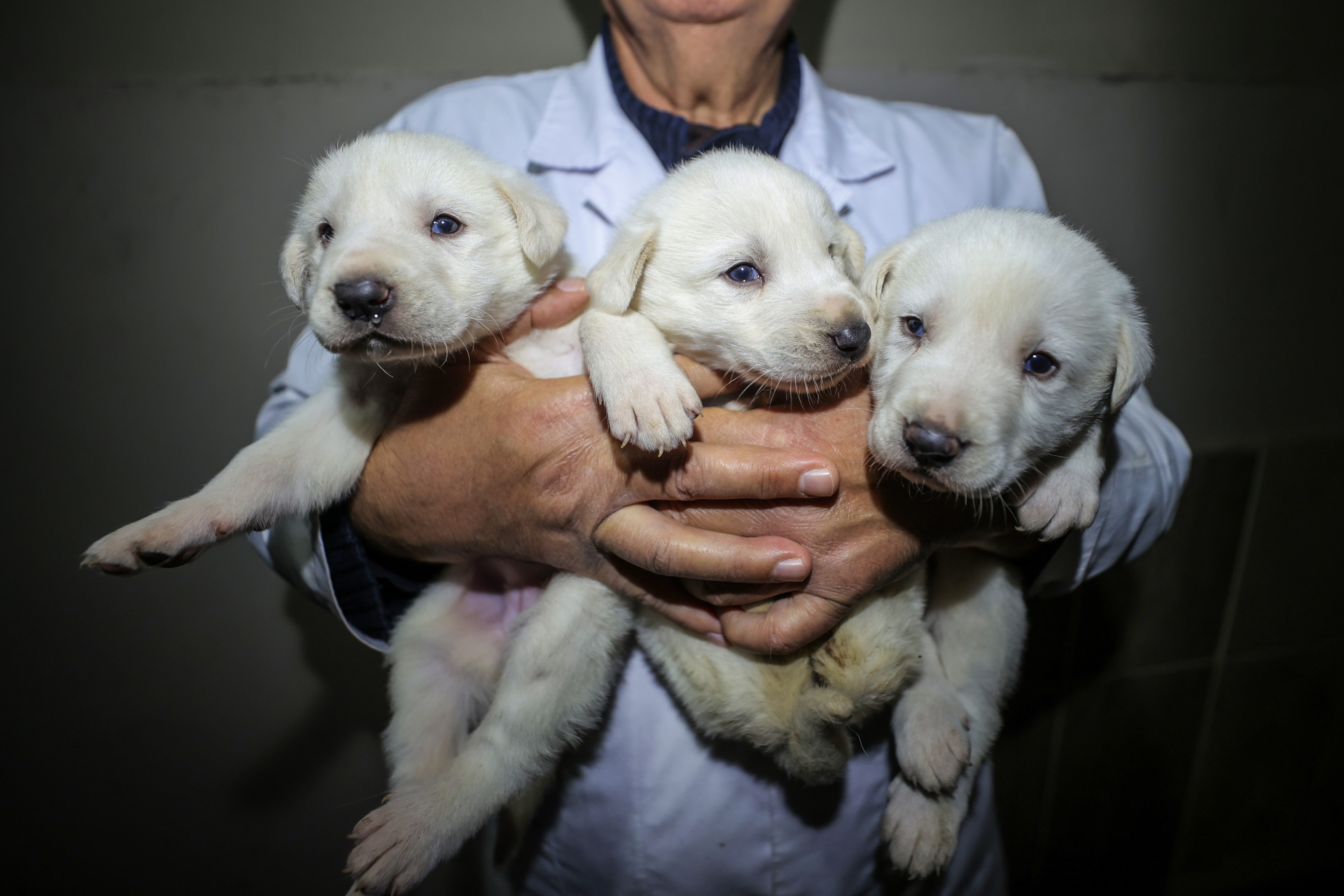 Akbas dogs are seen in the dog breeding facility belonging to the General Directorate of Agricultural Enterprises of the Ministry of Agriculture and Forestry in Karacabey district of Bursa, Turkiye on November 20, 2024. Purebred Kangal and Akbas Turkish shepherd dogs have been bred in the facility since 1992. (Photo by Mustafa Yilmaz/Anadolu via Getty Images)