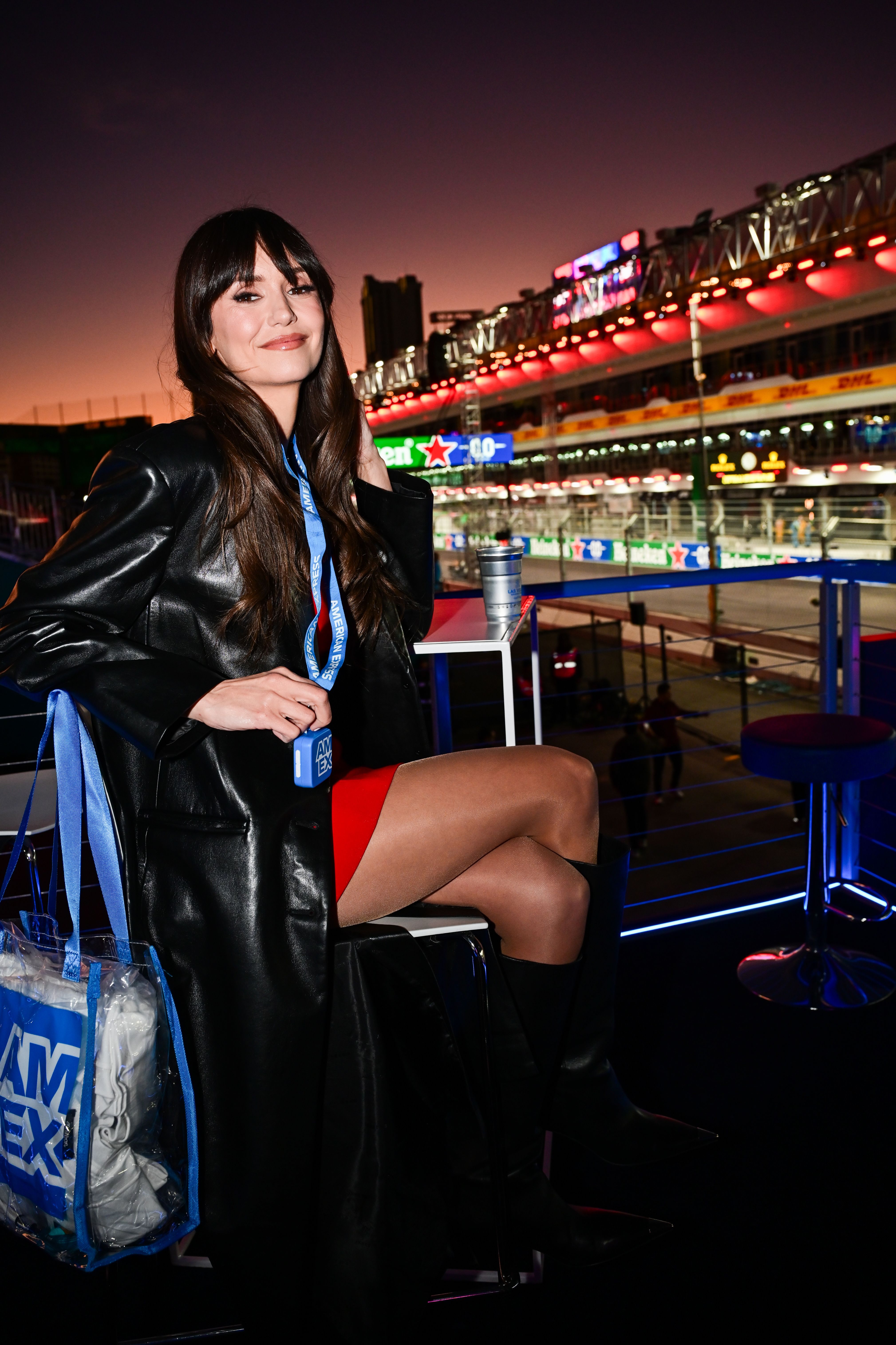 Actress Nina Dobrev watches the exciting F1 action from the American Express Trackside Lounge at Las Vegas Strip Circuit on November 22, 2024 in Las Vegas, Nevada. (Photo by Michael Potts/Getty Images for American Express)