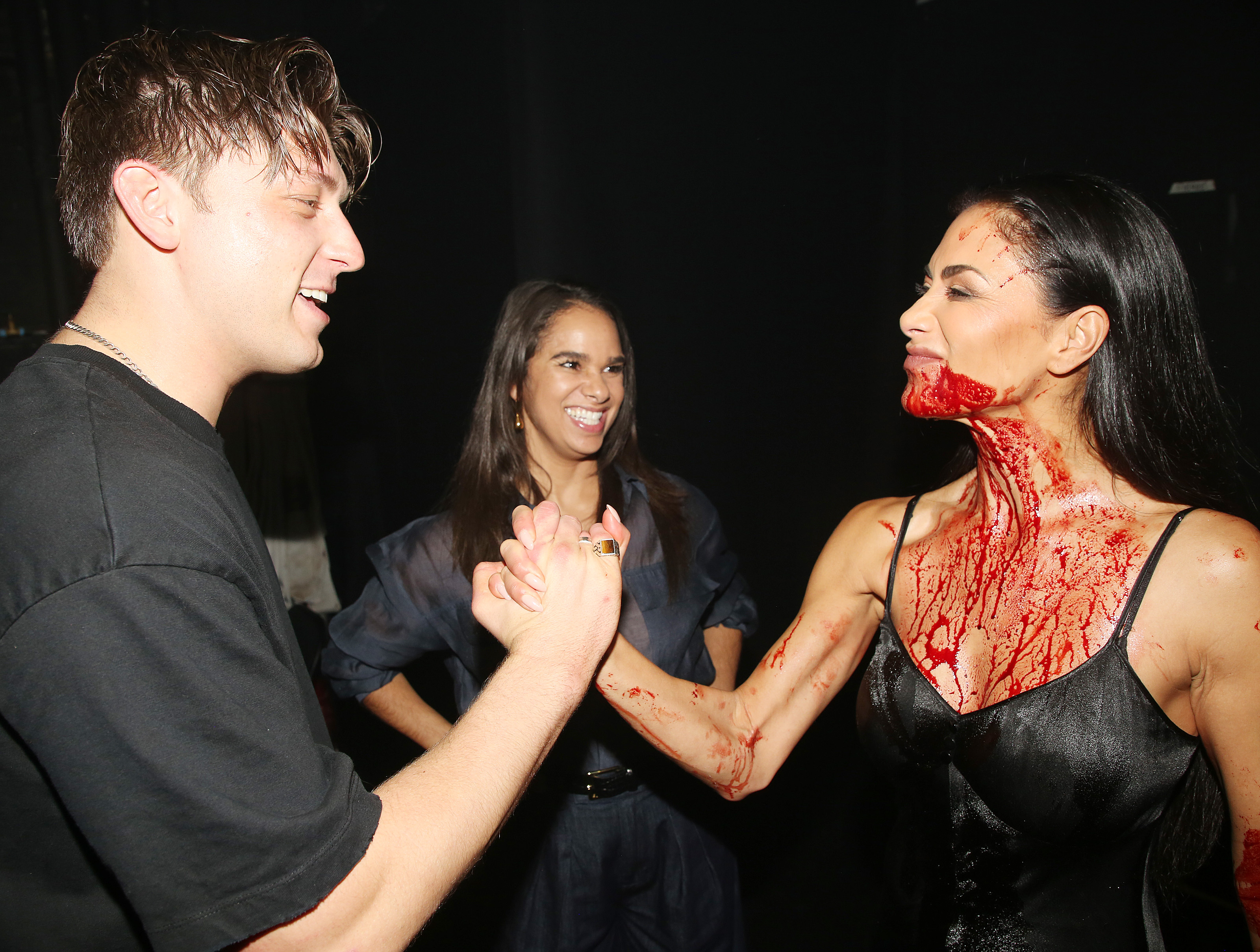 Theater performer Tom Francis, American ballet dancer Misty Copeland and American singer-songwriter Nicole Scherzinger, with fake theatrical make up, backstage at the hit musical “Sunset Blvd” on Broadway at The St. James Theatre on November 21, 2024 in New York City. (Photo by Bruce Glikas/WireImage)