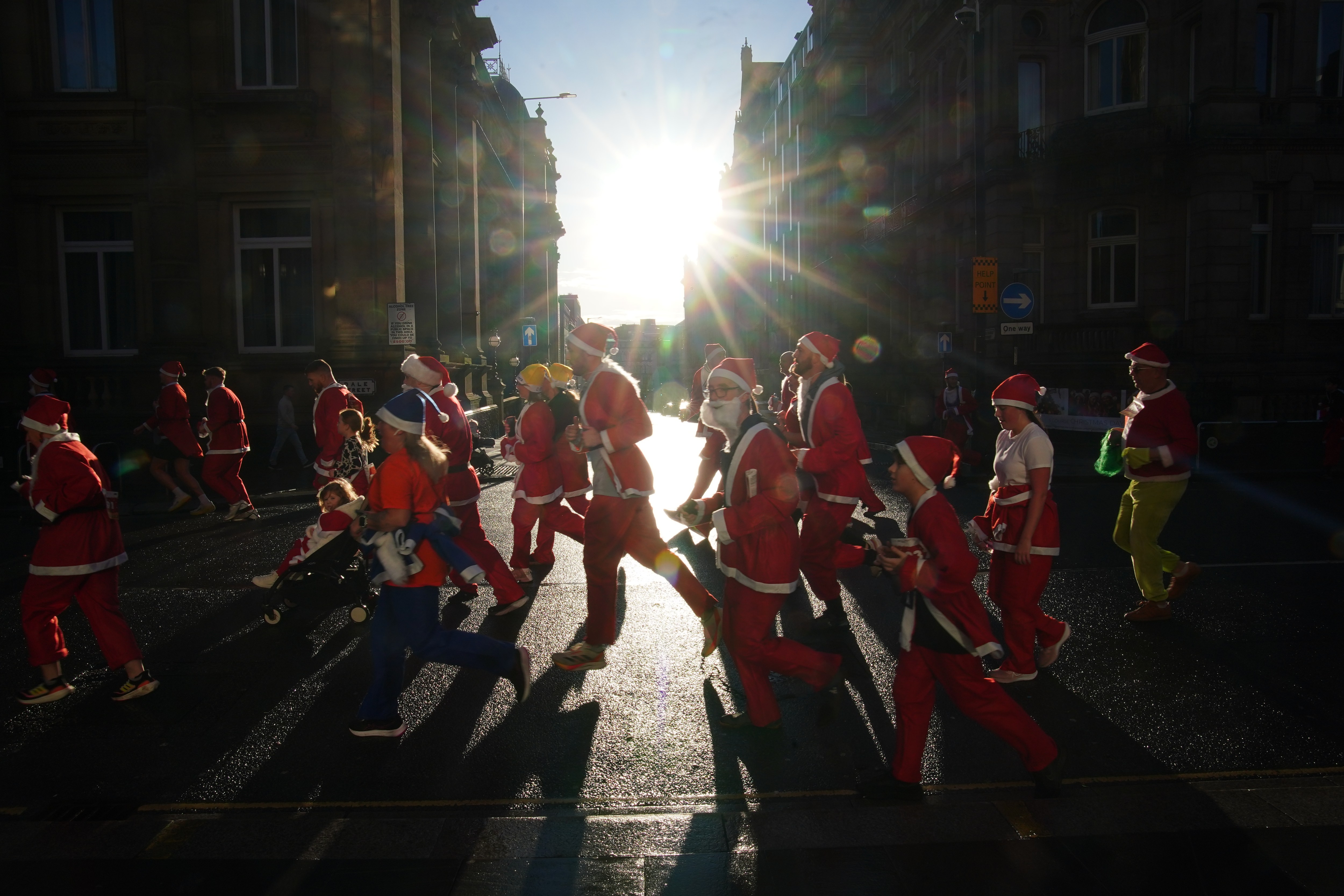More than 8,000 participants, known as Santas take part in the annual charity fundraising Liverpool Santa Dash event on Sunday, December 1, 2024. (Photo by Peter Byrne/PA Images via Getty Images)