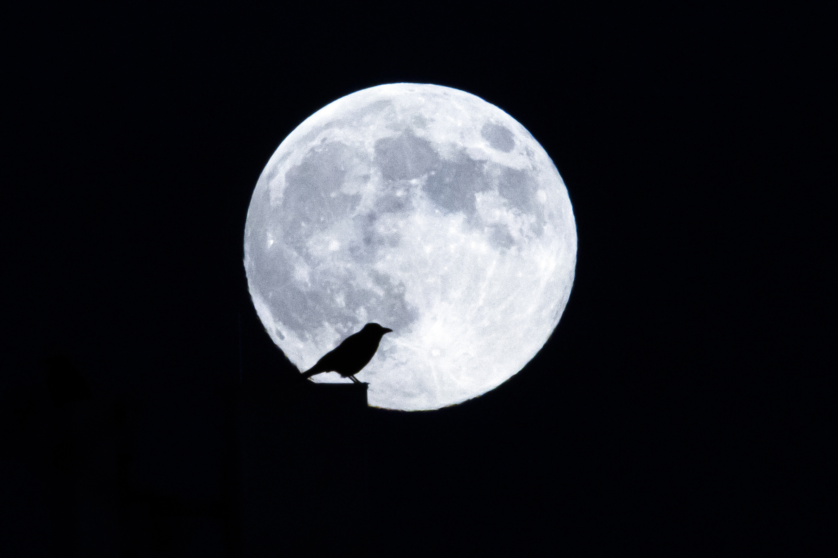 A bird is silhouetted against the full moon rising over Zurich, Switzerland on 15 November 2024. (Photo by Michael Buholzer/EPA/EFE)