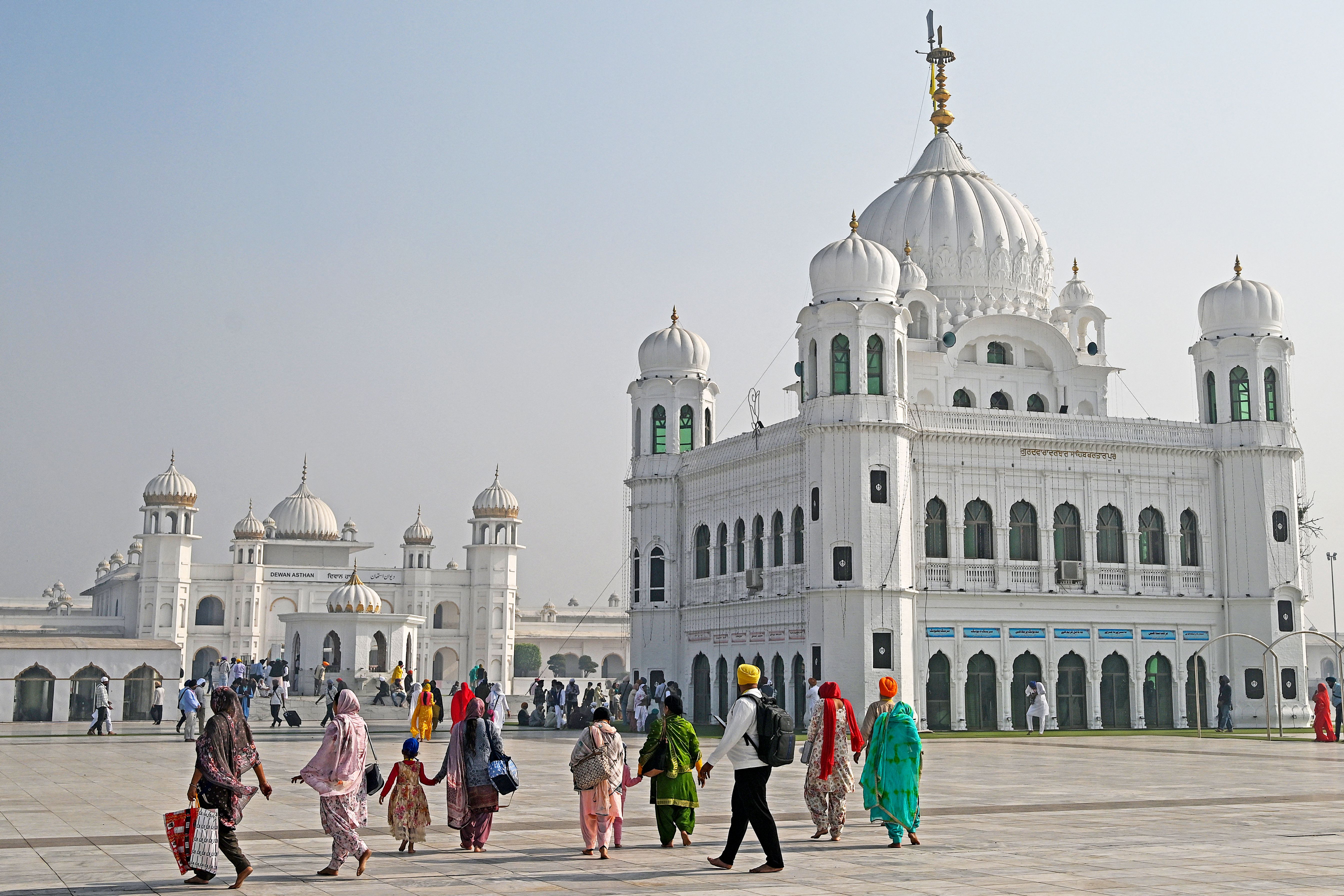 Sikh pilgrims arrive at the Gurdwara Darbar Sahib to pay their respect during celebrations marking the birth anniversary of Guru Nanak, founder of Sikhism, in Kartarpur near the India-Pakistan border on November 19, 2024. (Photo by Aamir Qureshi/AFP Photo)
