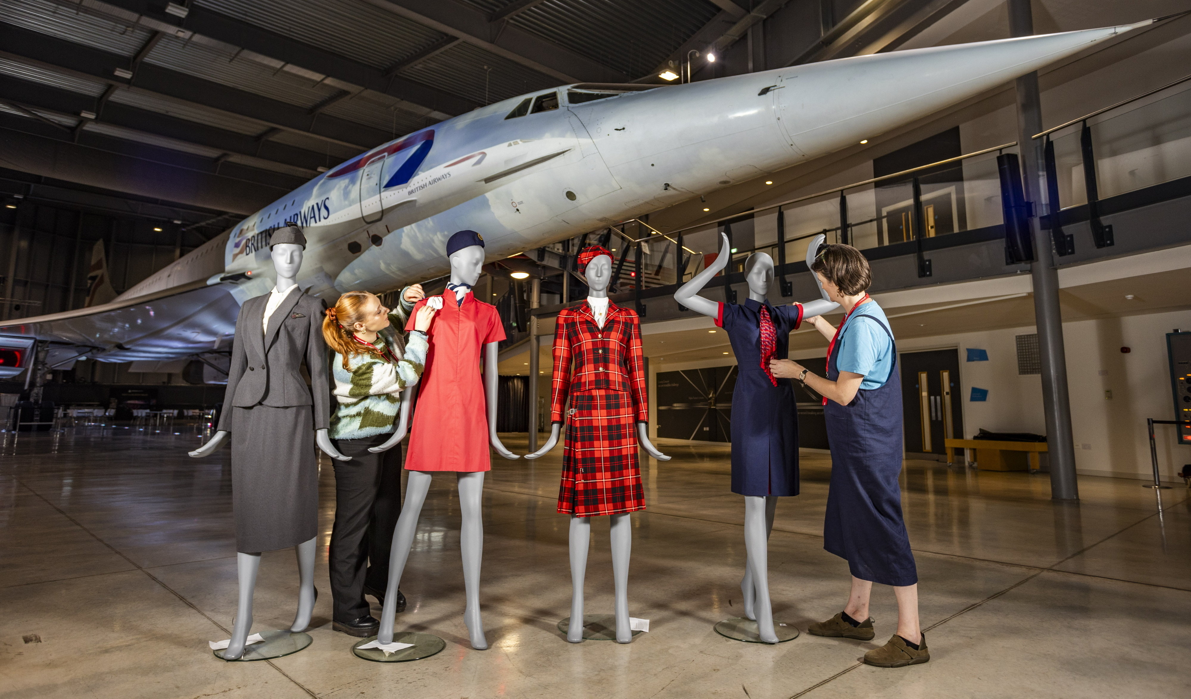 Classic British Airways uniforms spanning eight decades have gone on display on October 16, 2024. The Fashion of Flight will showcase a variety of British Airways cabin crew and flight crew uniforms, from 1940s to modern-day designs. The iconic designs, including a paper dress and a tartan uniform, will be on show at Aerospace Bristol until 17 November. (Photo by Tom Wren/South West News Service)